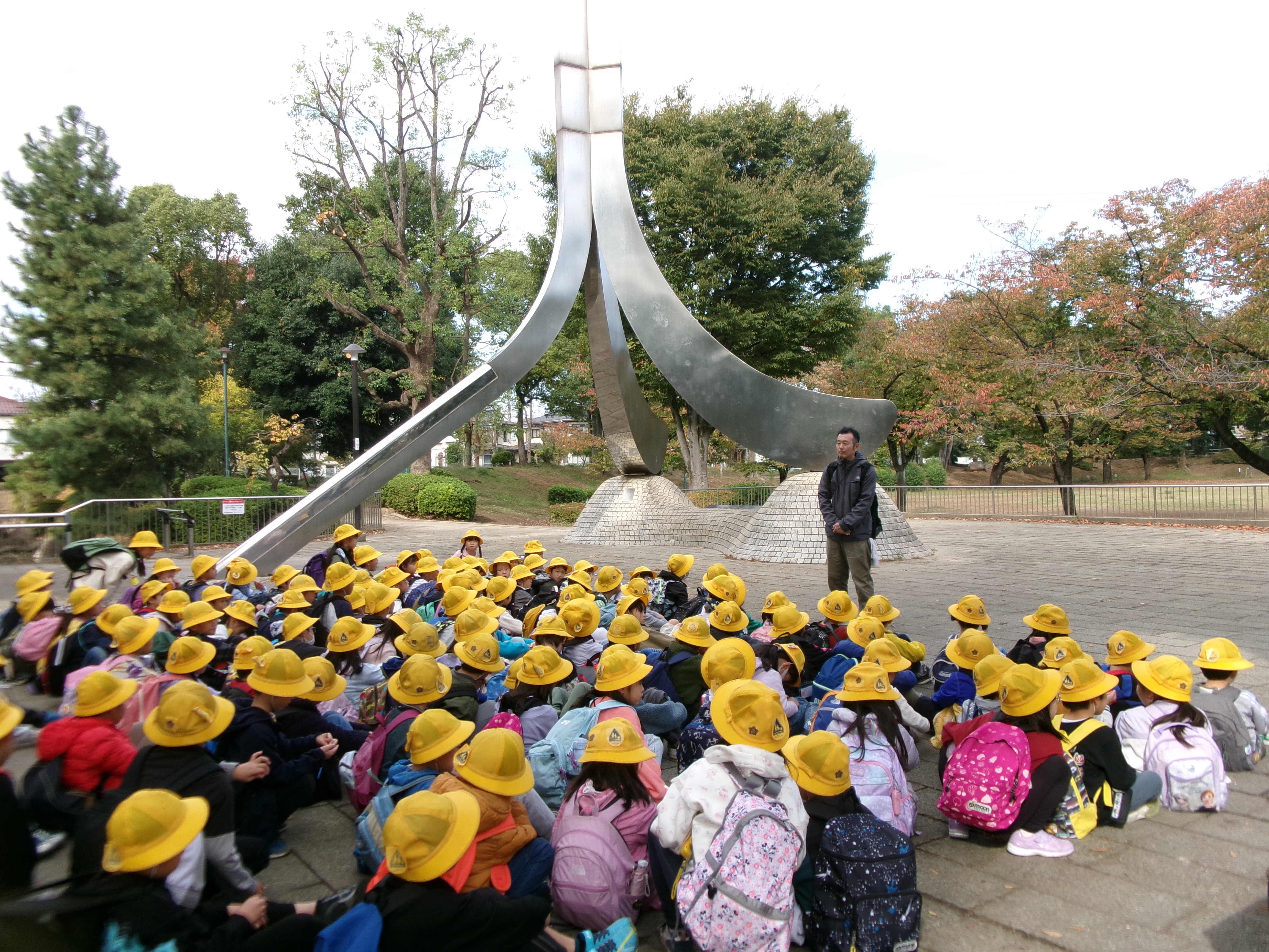 1年生は府中公園に遠足に行きました。先週からの延期でしたが、とてもいい天気で、芝生の広場でクラスごとに遊んだり、どんぐり拾いをして秋を探したりしました。公園に来ていた小さい子とも、譲り合って遊具を使えていて、とてもよかったです。たくさん遊んだ後は、みんなでお弁当やお菓子を食べて、楽しく過ごしました。安全に気をつけて行って、帰ってくることができ、初めて1年生全員で遠足に行きましたが、とてもよく頑張っていました。帰ってきてからも「楽しかった!」という声が聞けて、嬉しかったです。ご準備にご協力ありがとうございました。