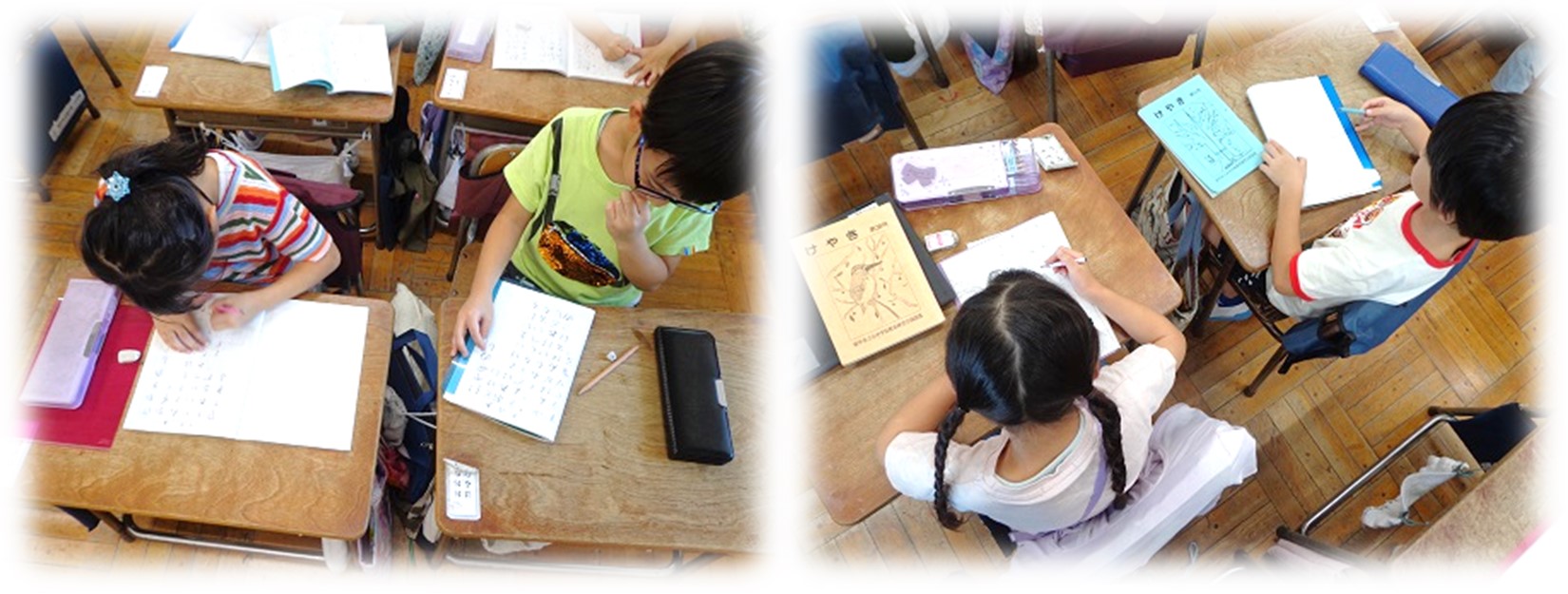 生活科「いきものとなかよし」では、虫を捕まえて調べたり観察したりする学習を行いました。どんな生き物にであえるかワクワクしながら探す子供たちでしたが、暑さのためあまり多くは見付からず、それだけに捕まえられた時の笑顔がキラキラと輝いていました。捕まえた後に、タブレットを使って虫のことを自主的に調べようとする様子も見られました。虫取り網や虫かごの準備をしてくださった保護者の皆様、ありがとうございました。