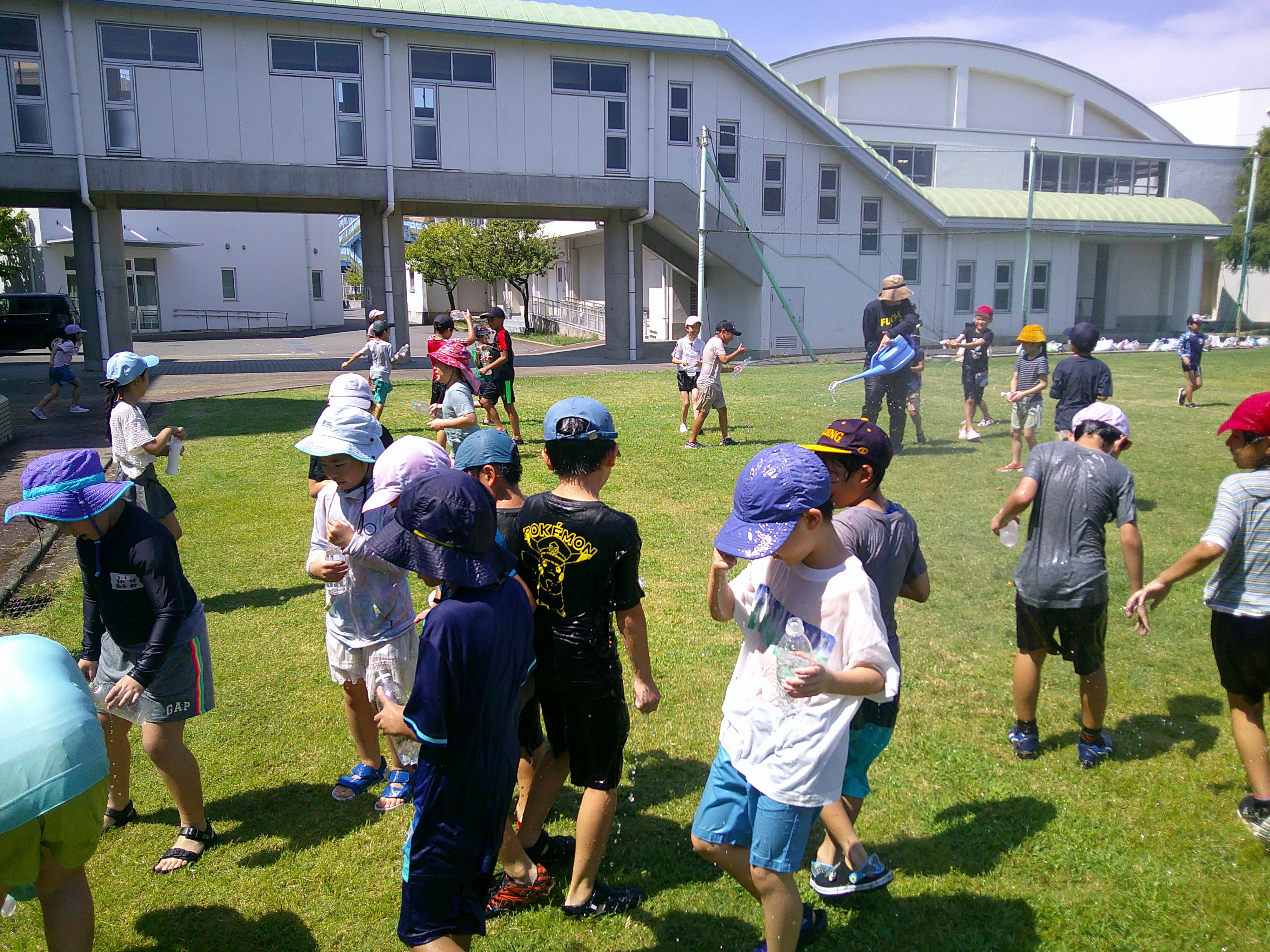 生活科の学習で、水遊びを行いました。的当てをしたり、友達と水を掛け合ったりしながら、涼しく楽しい時間を過ごしました、保護者の方には、多くの準備物があったにも関わらず、ご協力いただき感謝しています。ありがとうございました。