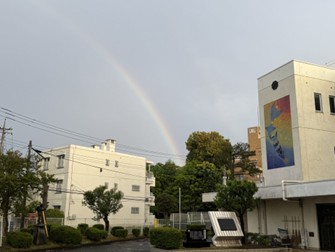 本日は、朝から雨が降っていて中休みは外で遊べませんでした。途中、雨もあがり晴れ間も出て、昼休みは外に出て遊ぶことができました。夕方には、虹も見ることができ気持ちも晴れやかになりました。明日は、中休みも元気に遊べる良い天気になってほしいです。
