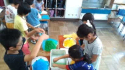 展覧会に向けての立体作品として、図工でお面作りをしました。まず、自分に足りない所は何かを考え、面白い自分、勉強が得意な自分、優しい自分など、自分のお面のテーマを決めました。次に、お面の台紙にビニールを付けた後、その上に洗濯のりを付けたお花紙を何枚も重ねて貼っていきました。洗濯のりやお花紙の感触を楽しみながら、集中して作りました。土台を乾かし、最後に自分なりに考えた飾りや模様を作って付けて、個性的な作品が完成しました。