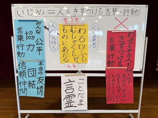 話し終わると、それまで静かに聞いていた子供たちから、拍手が聞こえました。しっかり聞いてくれて、とても嬉しかったです。保護者の皆様、いじめは、学校以外の場所でも、インターネット上でも、起こりえるものです。子供たちの人権を守り、平和を大切にする人格を形成するために、いじめを生まない、いじめを許さない学校づくりを推進していきます。ご心配がありましたら、小さなことでも気兼ねなくご相談ください。子供たちの健全育成に向けて、共に、考えてまいりましょう。