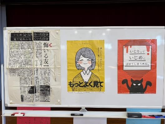 (大津市立中学2年生が亡くなった新聞を見せて)「あの時、勇気を出して、止めていればよかった。」このクラスの人たちは、もう何年たっても後悔が消えません。大人でも、インターネットの書き込みで、ひどい悪口を書かれて、命を落としてしまった人がいるのです。それほど、いじめは、怖いことだということを分かってください。