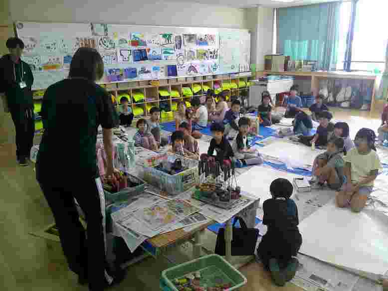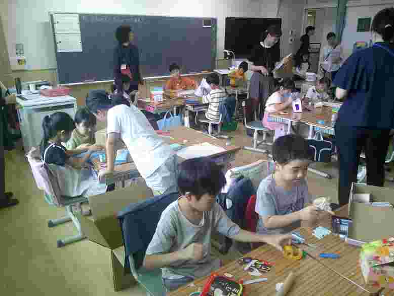 今日は久々に酷暑から解放されました。雨が降らなかった午前中は、元気いっぱい校庭で遊ぶことができました。今日から詩の暗唱が再開しました。中休み、さっそくたくさんの子供たちが校長室に来ていました。2年生は図工で大型段ボールを使った工作の学習をしています。友達を協力しながら思いついたことを形にする楽しさを味わいました。