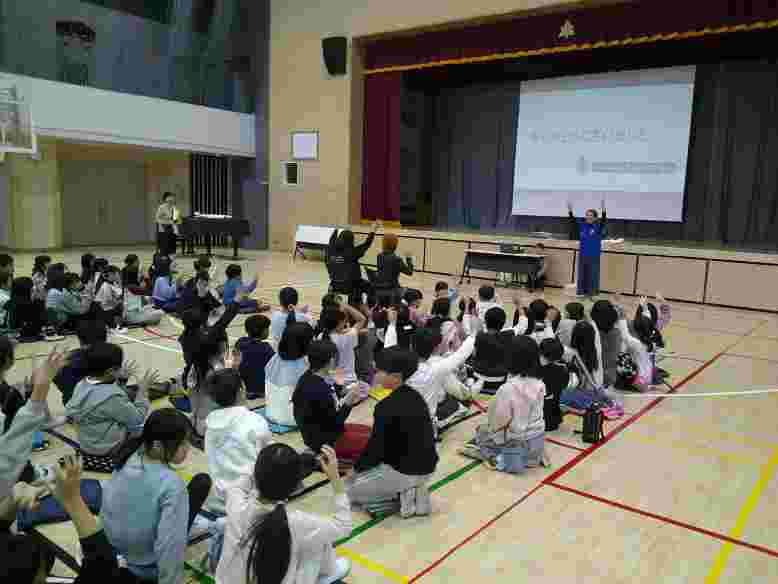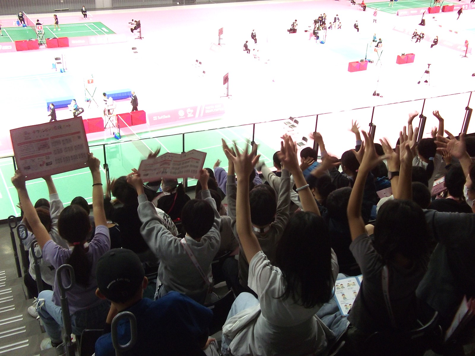 4年生は、「デフリンピック」のバドミントン競技の観戦で、調布市の武蔵野の森総合スポーツプラザに行きました。子供たちは、選手が相手の細かい反応や体の動きを見て瞬時にシャトルに反応する真剣な姿に感動しながら、サインエールを送ったり応援ボードを掲げたりと精いっぱい応援していました。