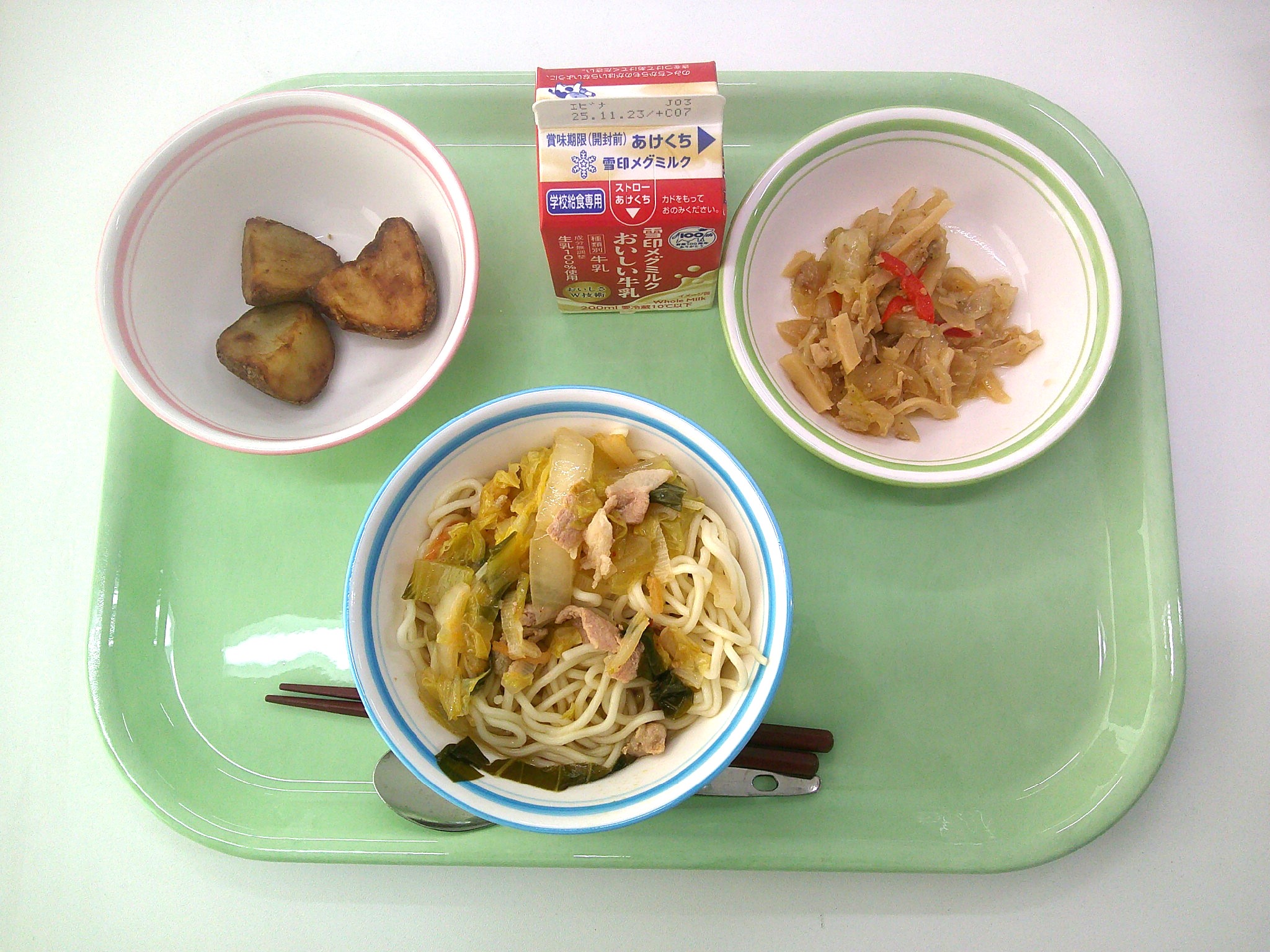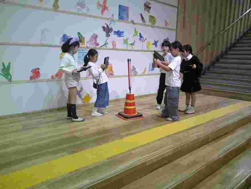 毎朝、中央階段は子供たちのにぎやか声が溢れています。今日も子供たちは元気いっぱいです。天気のよい1日で、2年生は外で図工の作品作りをしました。5年生は昨日に続き、家庭科室で野菜をゆでる調理実習をしました。