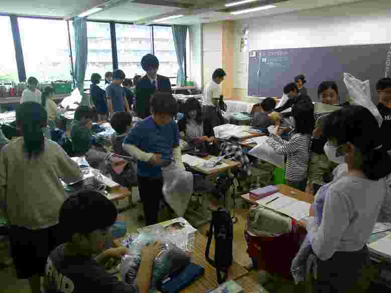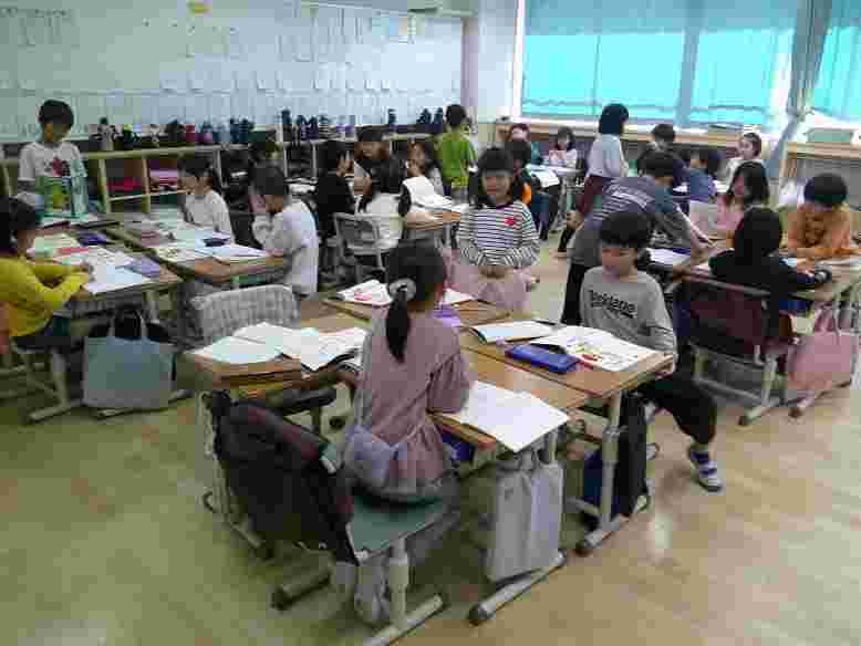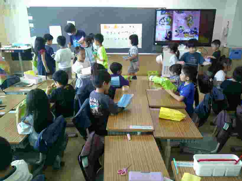 アサガオを育てている1年生の児童は、毎朝の登校時、心を込めて水やりをしています。きれいな花が咲く日が待ち遠しいです。6年生の図工は、新校舎を建設したときに出た廃材(木材)を使った工作に取り組んでいます。5年生は家庭科の学習で、裁縫の基礎、玉止め、玉結びをしました。4年生の学級では、「スポフェス頑張ったね会をしよう」というテーマで、学級会を行い、活発な意見がたくさん出ていました。