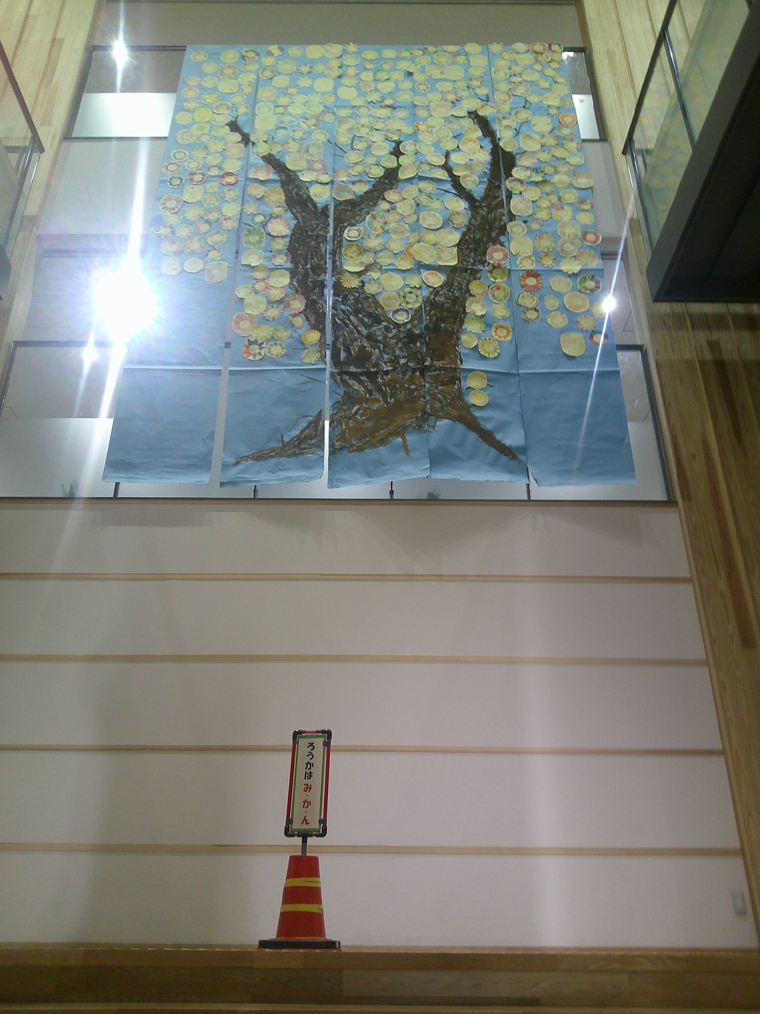 2年生の体育は、跳び箱運動をしています。今日は授業の初めに、馬跳びの練習に取り組みました。六小の創立70周年を記念して全校児童で制作に取り組んできた「みんなの木」。火曜日にサポート委員会の児童が仕上げをし、完成した2枚の大きな作品を、中央階段に展示しました。