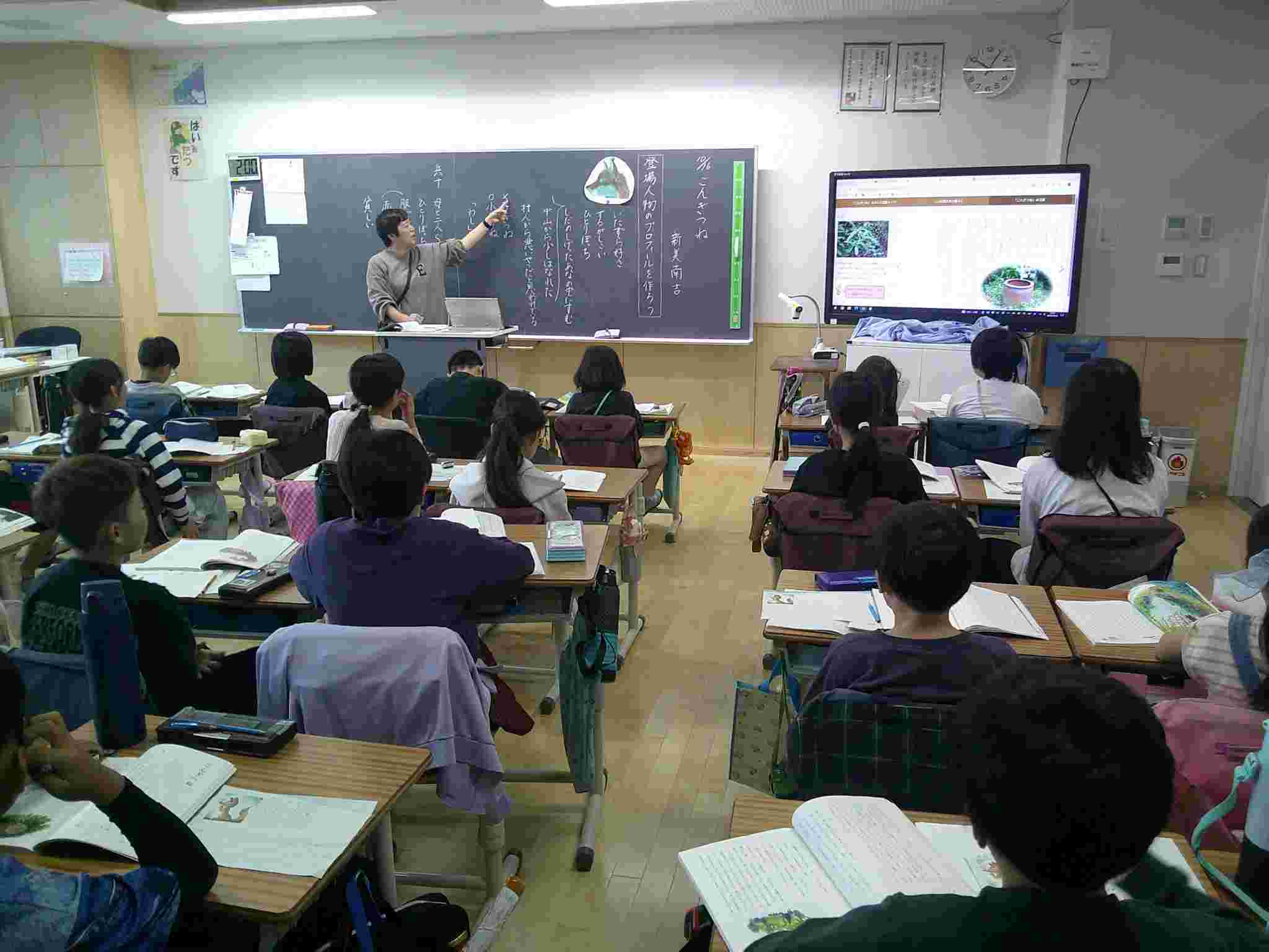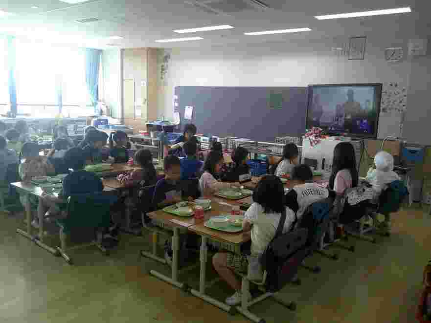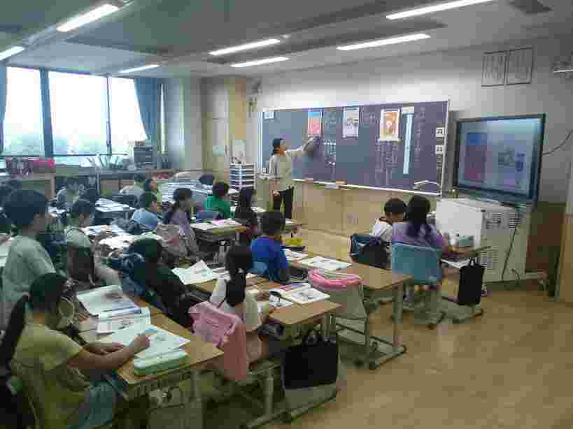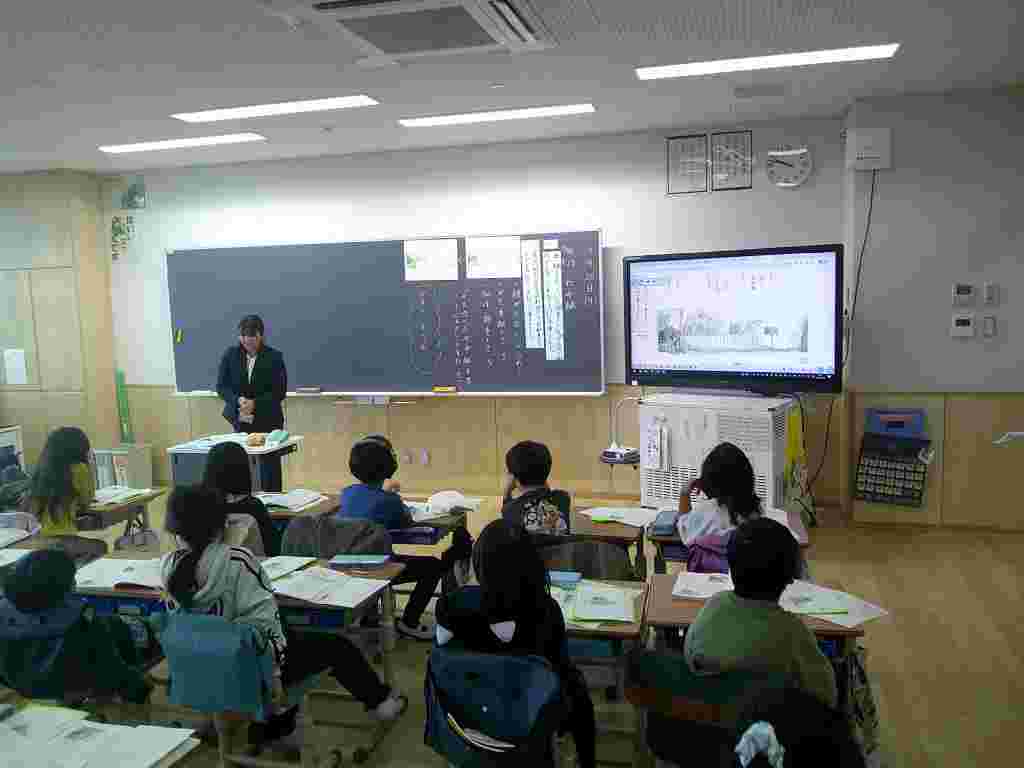 今日の全校朝会(オンライン)では、野球、バスケットバールチームと、「はたらく消防の写生会」に入賞した2年生児童7人の表彰がありました。4年生の外国語活動は、英語での数字の数え方や時間の尋ね方・答え方について学習をしています。3年生の音楽では、校歌に手話を加えて歌いました。