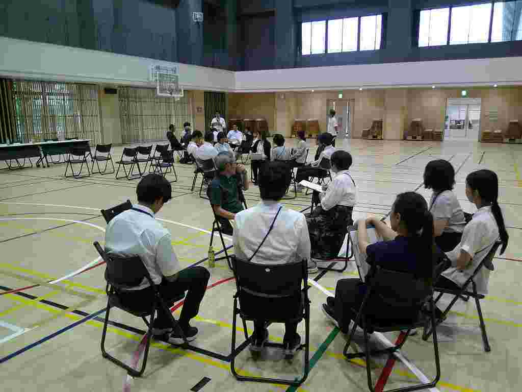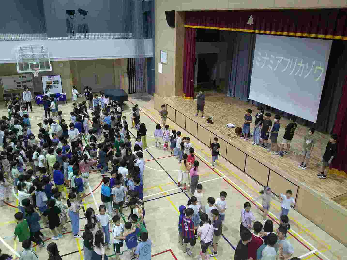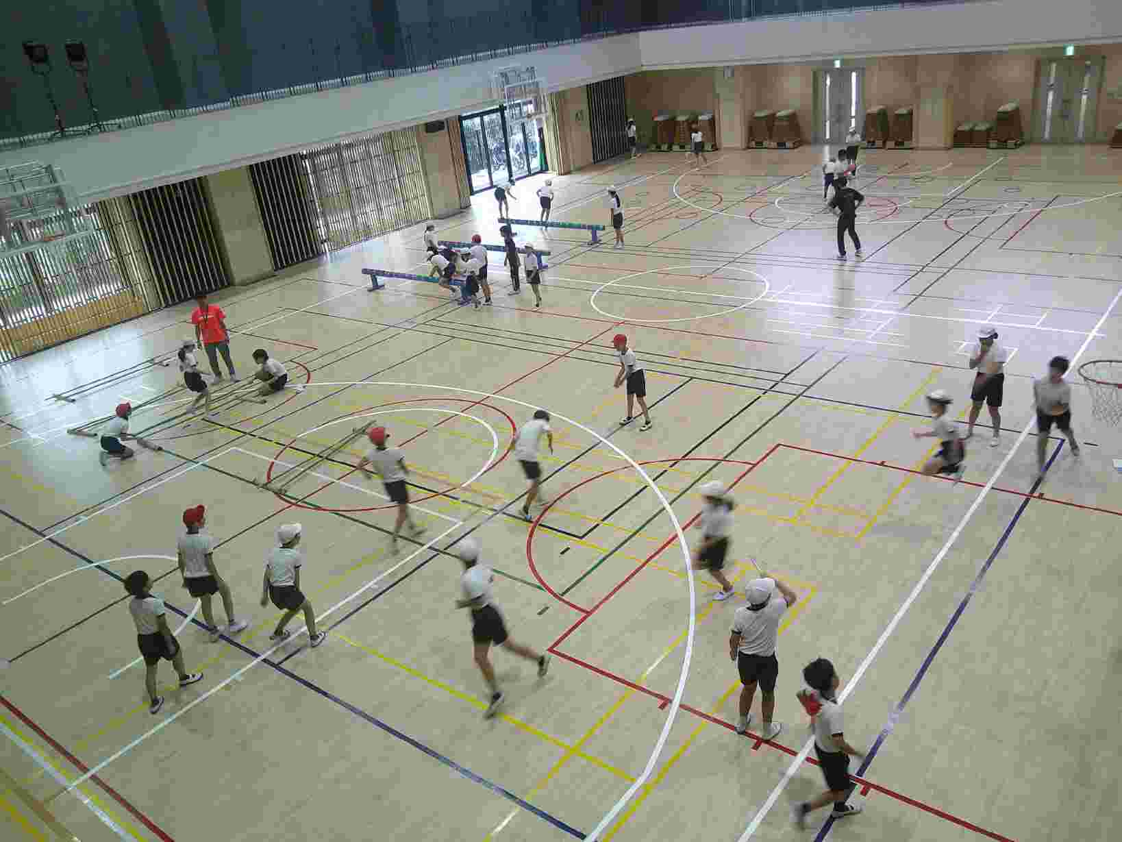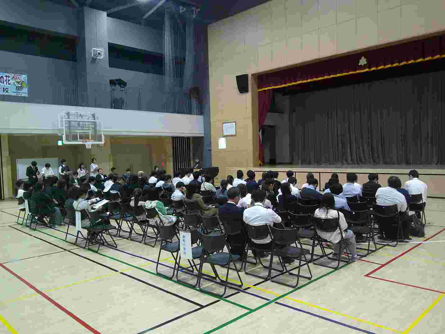 体育館はとても広くなり、1学年全員がそろっても、スペースに十分余裕があります。