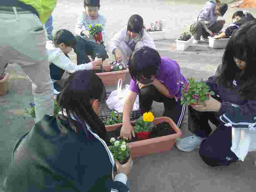 今日の理科・栽培委員会の活動は、NPO法人府中PFSが毎年実施している「花を育てよう事業」の一環として、パンジーやビオラの苗を植えました。これから担当の子供たちが大切に育てていきます。4年生の理科は、「音の性質」を学習しています。広い多目的ルームを活用して、子供たちは伸び伸びと学習しています。