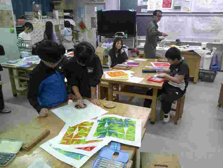 5年生の図工、「回転版画」の制作は、いよいよ完成が近づいてきました。たくさんの色鮮やかな作品が、図工室に溢れていました。たてわり班活動は、12月のラララコンサートに向け、6年生を中心に各班で練習が本格的に始まりました。