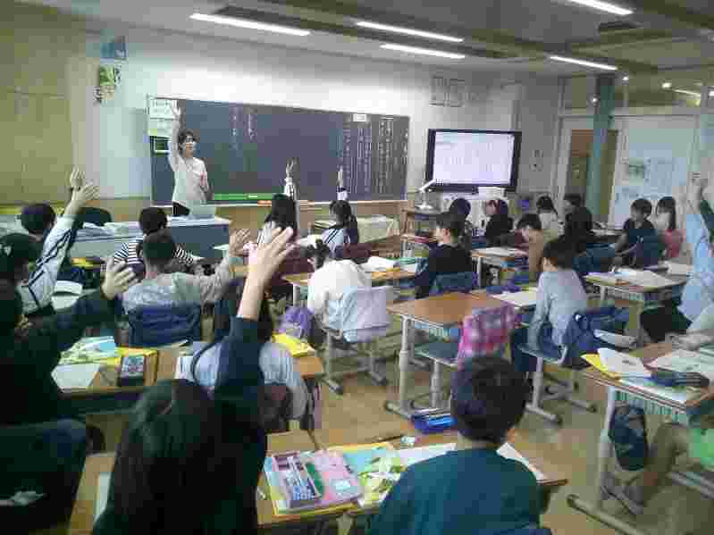 4年生は理科で「ものの体積と温度」の学習をしています。今日は、「空気を使ったマジックのなぞを解き明かせ」をテーマに、石鹸水をためた試験官に起こる変化について、子供たちが考えた疑問を発表し合い、学習課題を作りました。6年生の英語は、ジェスチェヤーの要素を取り入れながら「wher do you want to go ?」の表現を使った学習をしています。