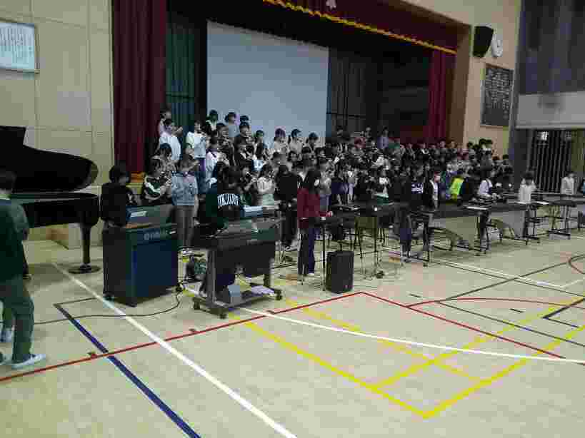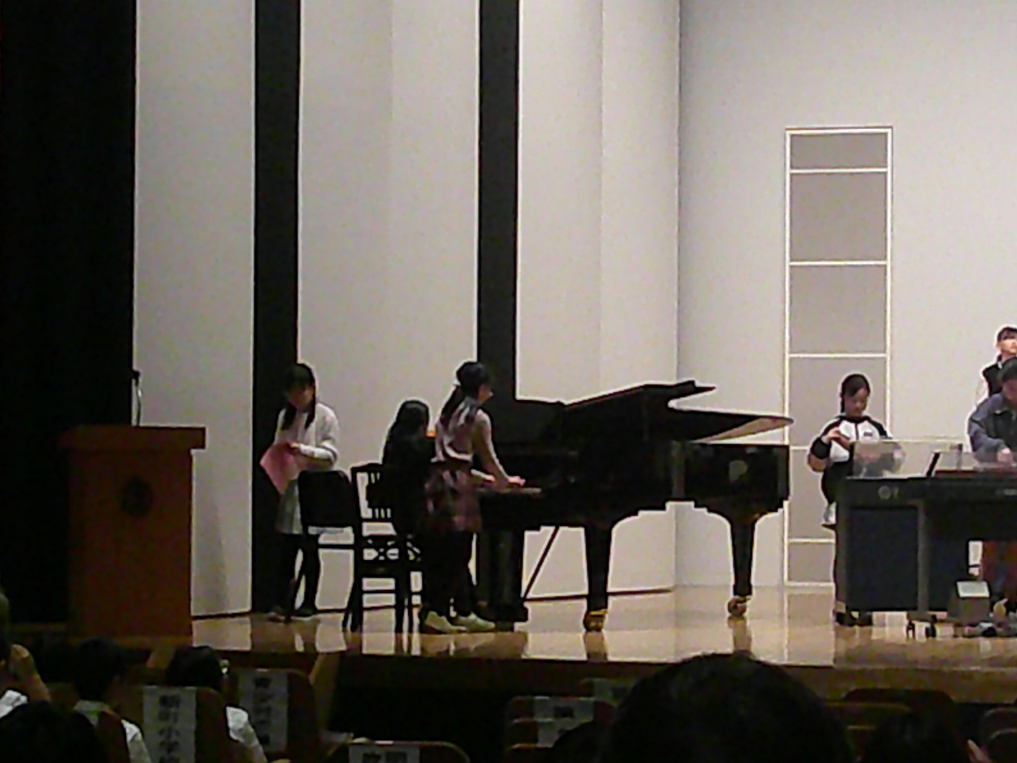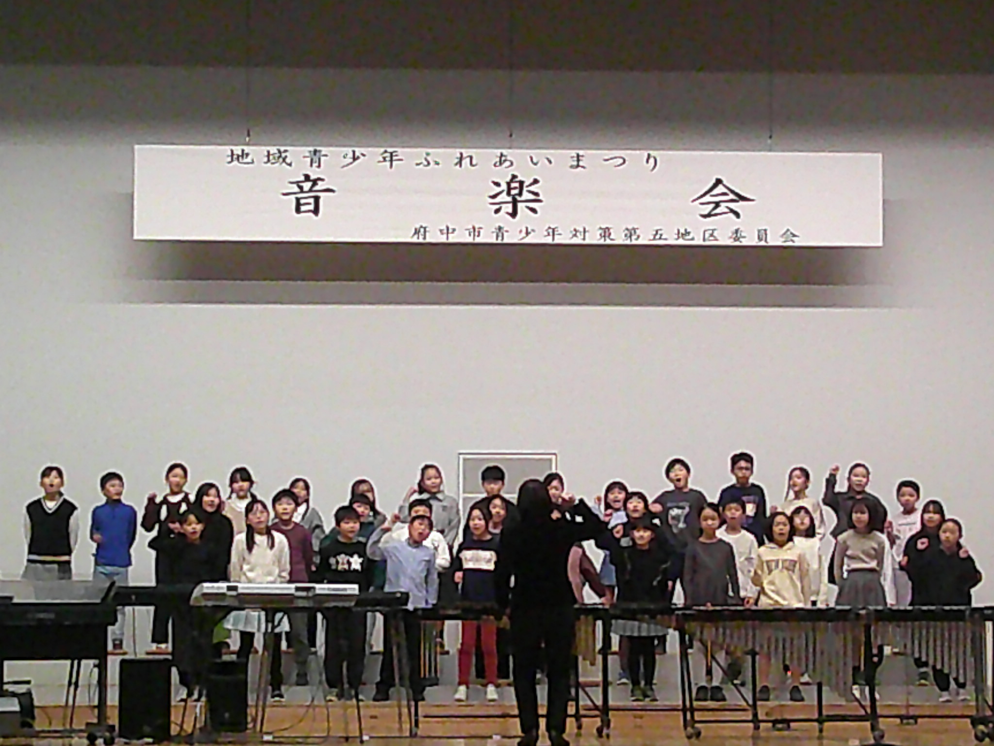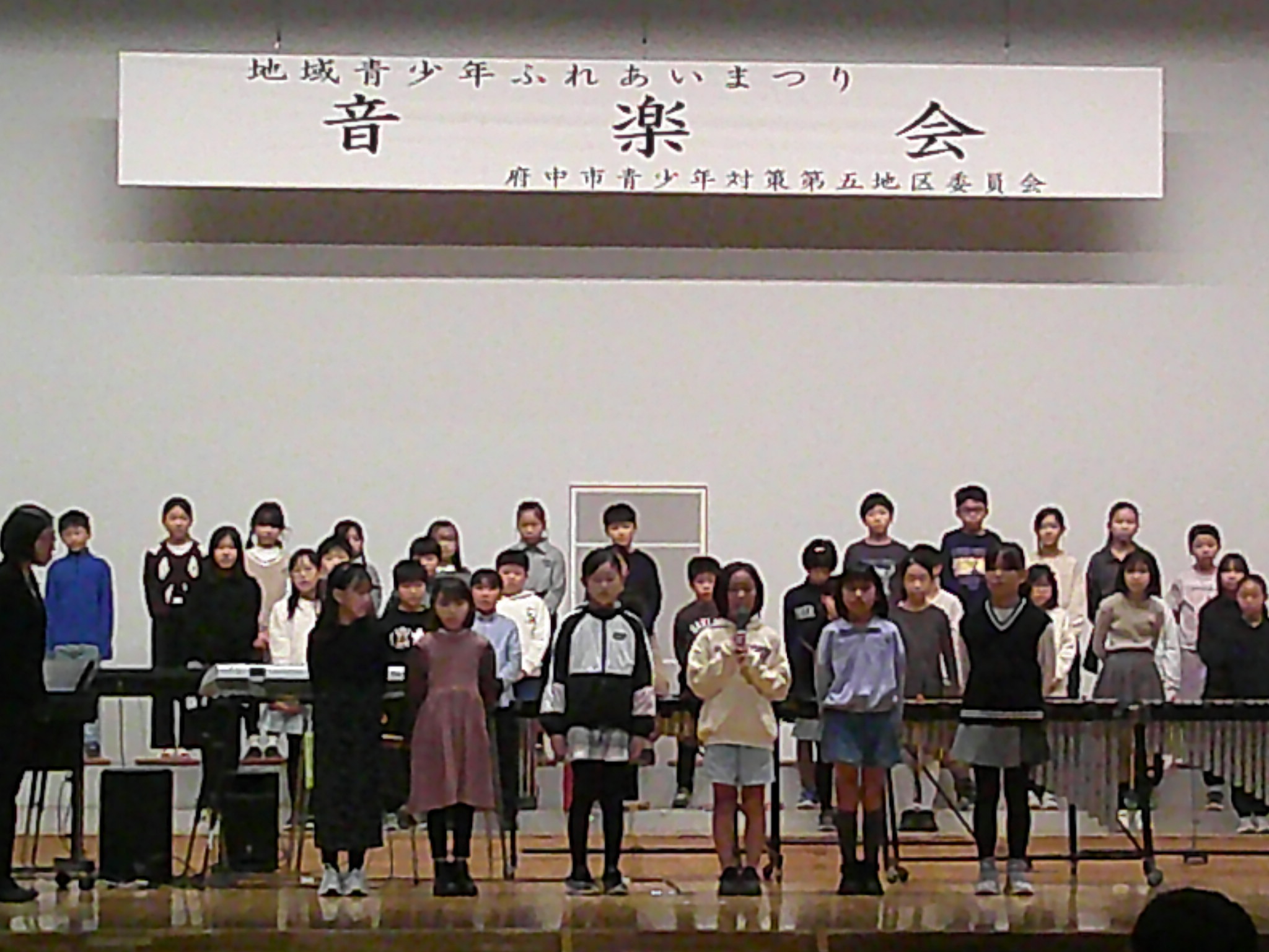 今日は明星学苑児玉九十記念講堂で、「第37回地域青少年ふれあいまつり音楽祭」(府中市青少年対策第五地区委員会主催の府中市青少年対策第五地区委員会主催)がありました。六小からは4年生の代表児童が参加し、スーパーカリフラジリスティックエクスピアリドーシャス」の合奏と合唱の発表をしました。