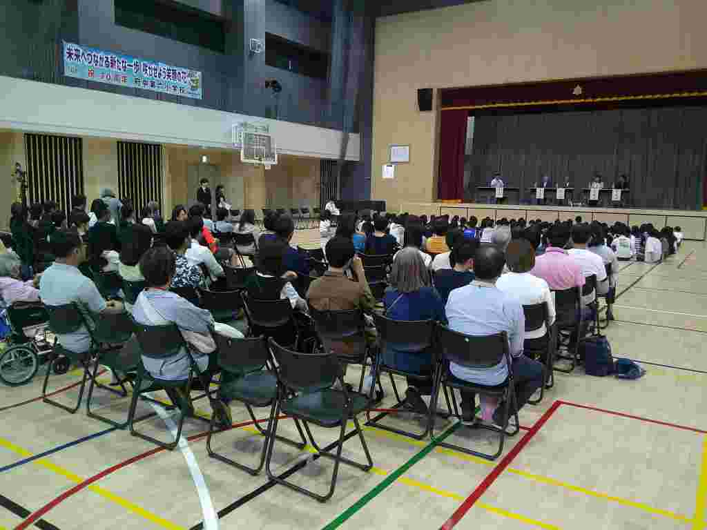 今日から2学期が始まりました。全校児童が久々に体育館に集い、気持ちを一つに始業式を行い、2学期の学校生活をスタートしました。午後は府中第五中学校で五地区サミットがありました。六小からは5年生、6年生の代表児童が参加し、「生活しやすい学校・地域 ~学校と学校、地域と学校でできること~をテーマに、新町小学校の児童と府中第五中学校、明星中学校の生徒とグループ協議を行い発表を行いました。