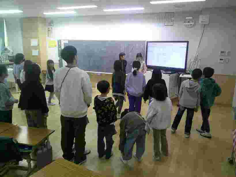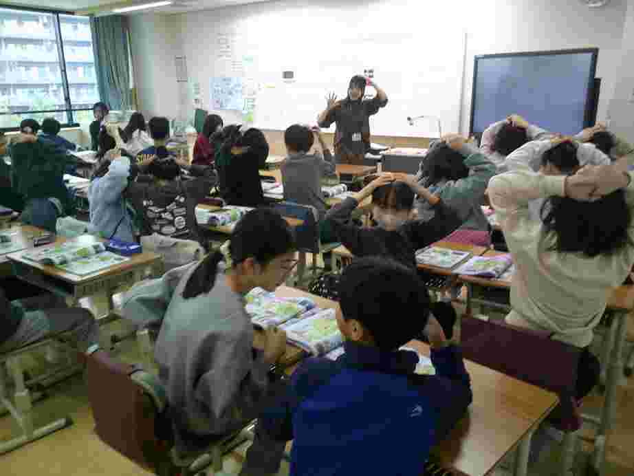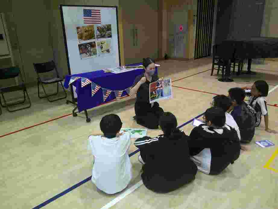 朝の児童集会は、集会委員会が企画した「もうじゅうがりに行こうよ」ゲームを行い、全校児童で楽しいひと時を過ごしました。今日は、東京都の事業で、英語を話す外国人の先生が学校に訪れ、児童と英語で交流するイベント、「イングリッシュキャラバン」がありました。今日一日は、秋晴れが広がる気持ちの良い天気でした。校庭では、充実した体育や理科の学習を行うことができました。