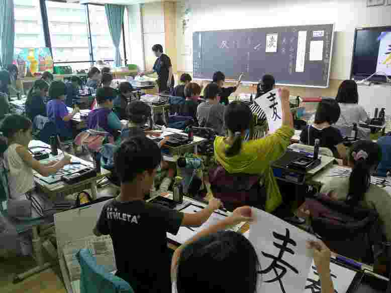 4年生は、書写(毛筆)で「左右」の学習をしました。文字のバランスに気を付けながら、子供たちはとても集中して、学習に取り組んでいました。2年生は音楽の学習で「むしのこえ」を鍵盤ハーモニカで演奏しました。また、手話を使って校歌を歌う学習もしました。