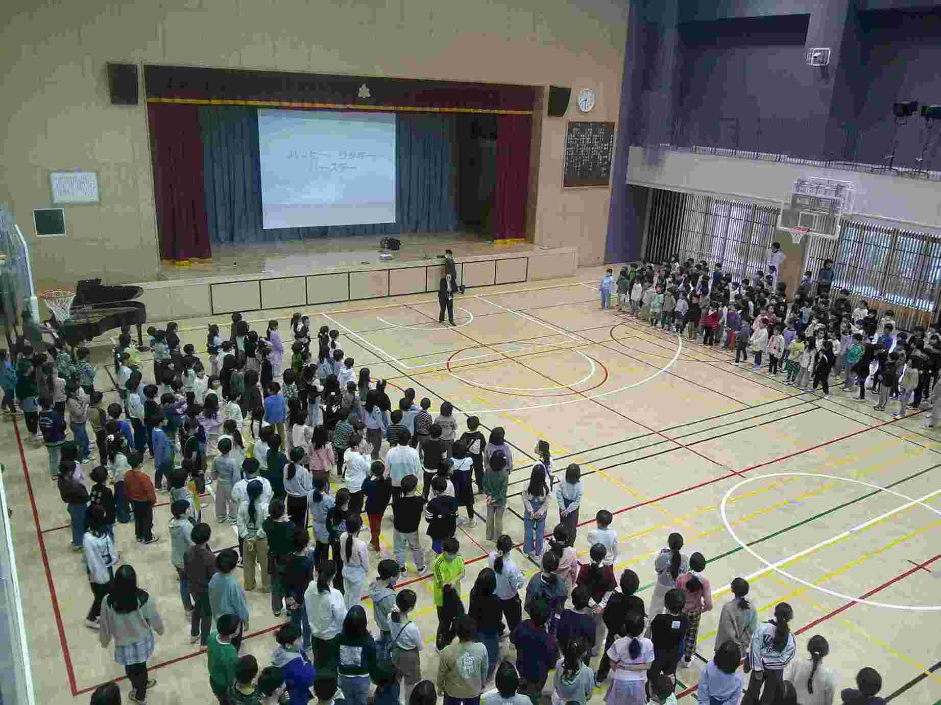 今朝の音楽集会は、来週の70周年記念児童集会に向け、全校児童で「ハッピーラッキーバースデー」と手話で「校歌」を歌いました。4年生の総合的な学習は、府中市聴覚障害者協会の方をお招きして、「手話体験」をしました。5時間目は、5年生体育の校内研究授業があり、府中市教育委員会教育指導担当主幹の先生から指導・講評をいただきました。
