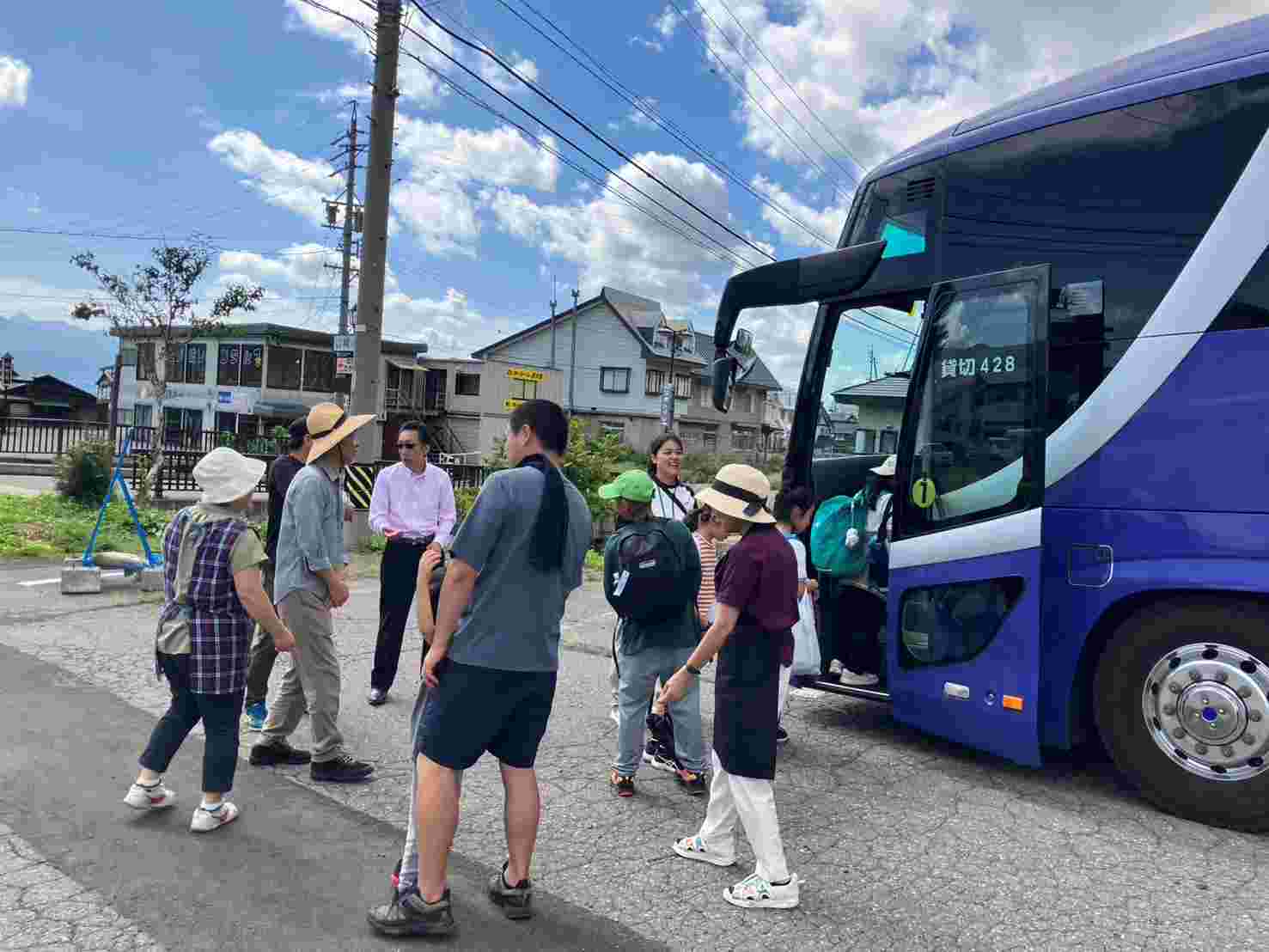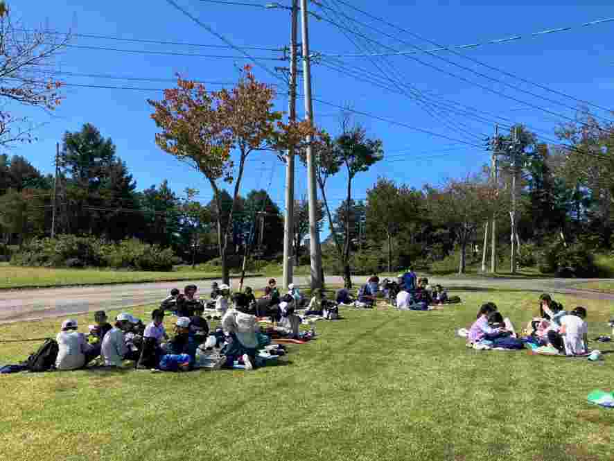 予定どおり12時過ぎに、斑尾高原の山の家に着きました。青空で爽やかな天気です。朝早くからお弁当の用意をありがとうございました。みんなで美味しく食べました。この後は、1・2組は希望湖トレッキング、3・4組はジップライン、楽しみです。