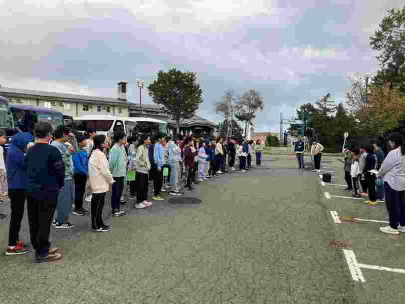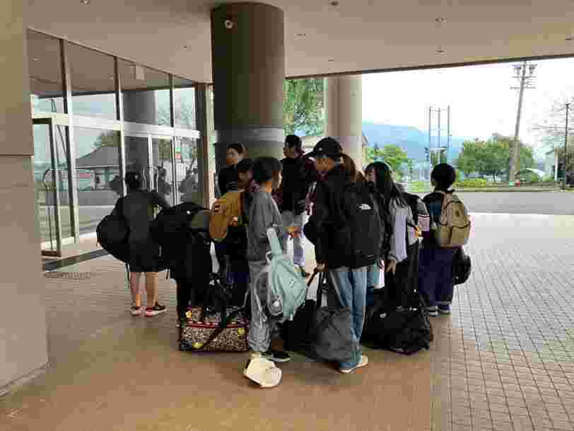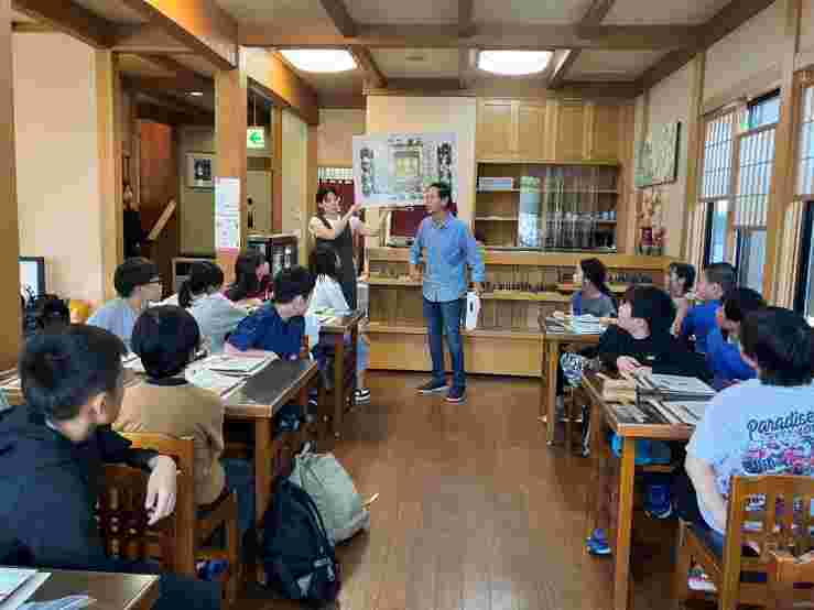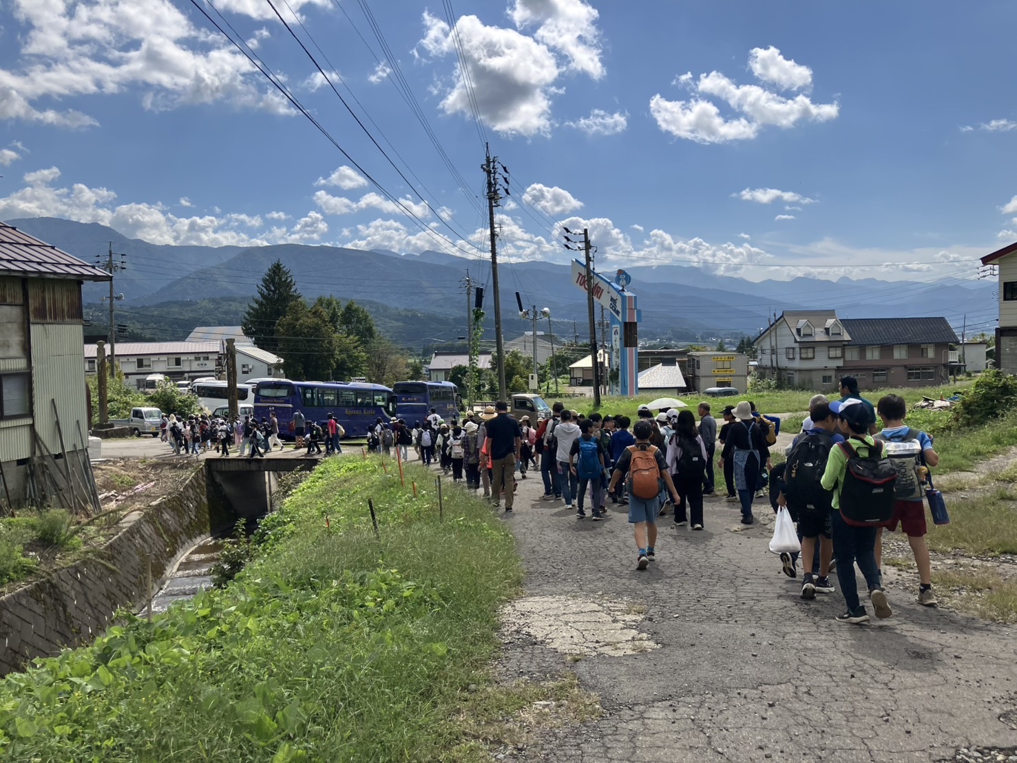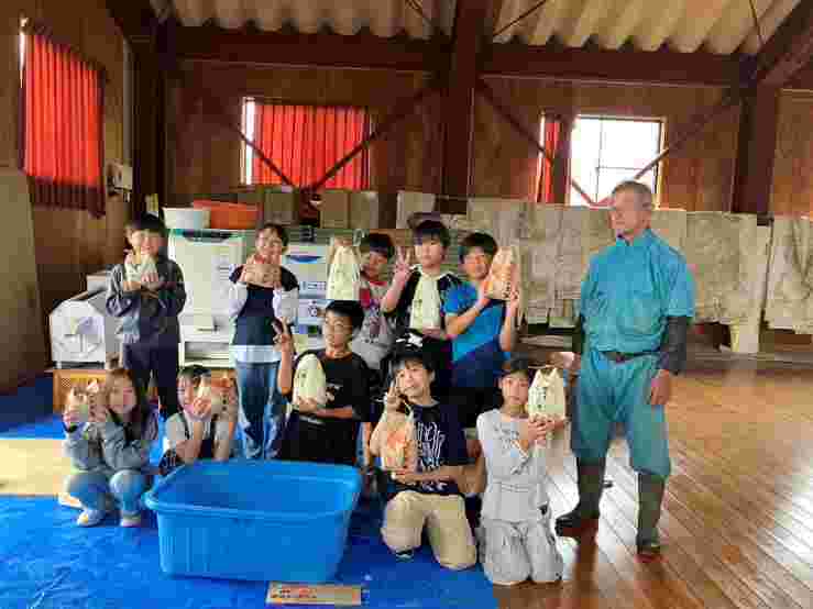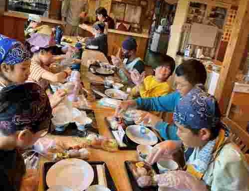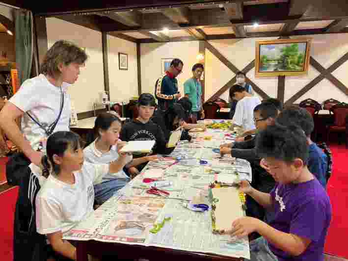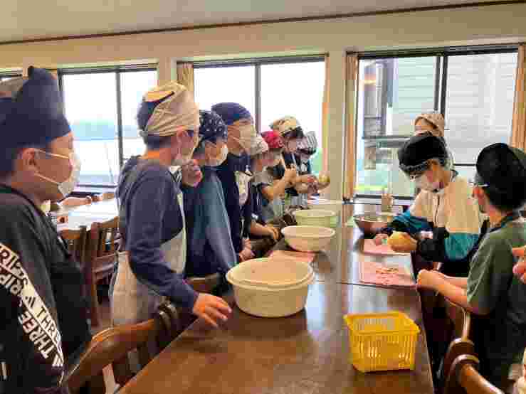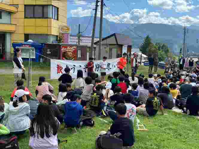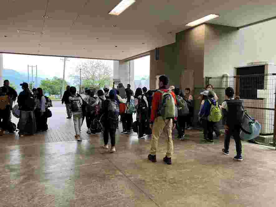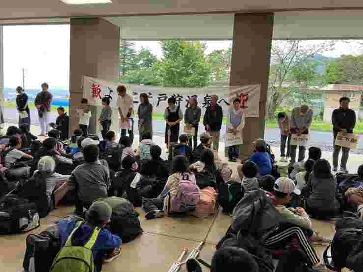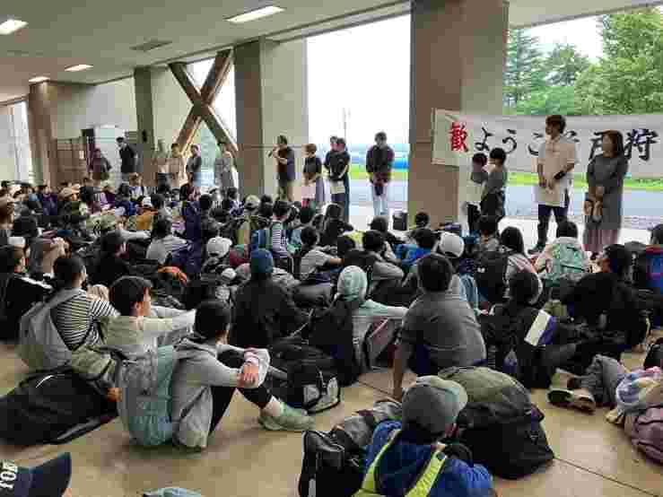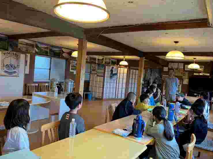 昼食後、退館式をして、お世話になった斑尾高原ホテルの皆さんに感謝の気持ちをお伝えしました。おいしいご飯、快適なお部屋、楽しいアクティビティと、大変お世話になりました。戸狩トピアホールには、お世話になる戸狩の民宿のお父さん、お母さんが迎えにきてくださっていました。入村式をして、それぞれの民宿に出発です。このあとのマイ箸作り、夕食、交流会も楽しみましょう。