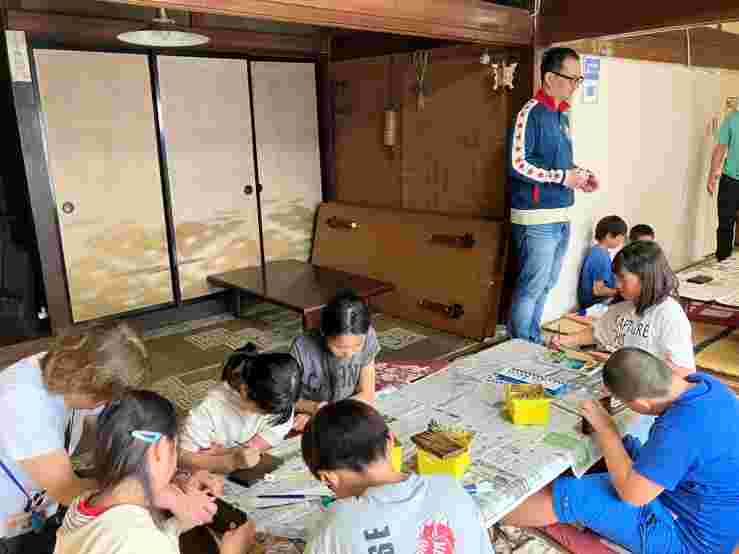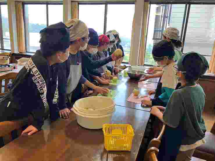 それぞれの民宿ごとに、焼き板作りやりんごジャム作り、額縁作り、脱穀体験などいろいろな活動をさせていただきました。