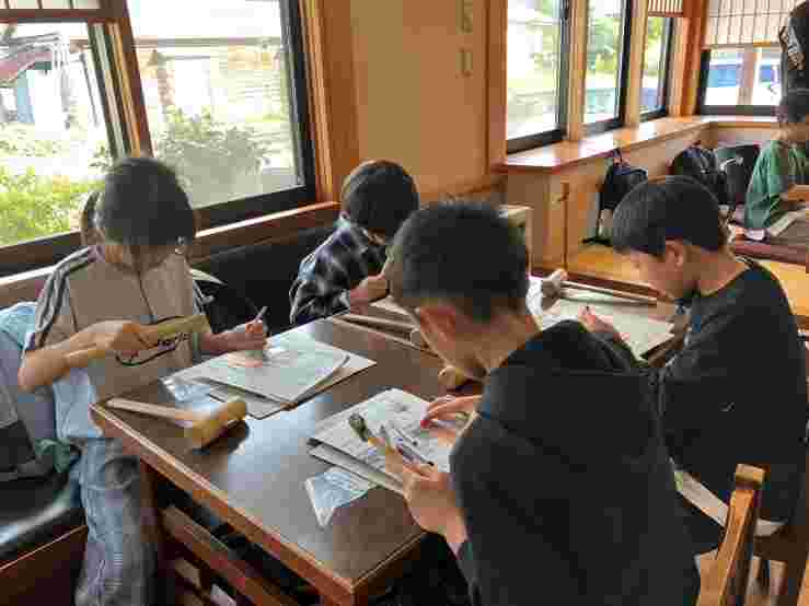 おはようございます。今朝の飯山は、あいにくの雨です。予報では、11時頃雨が上がりそうです。1・2組は9時頃から彫金、坐禅体験、3・4組は民宿オリジナル体験です。どんな体験ができるか楽しみです。