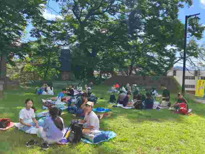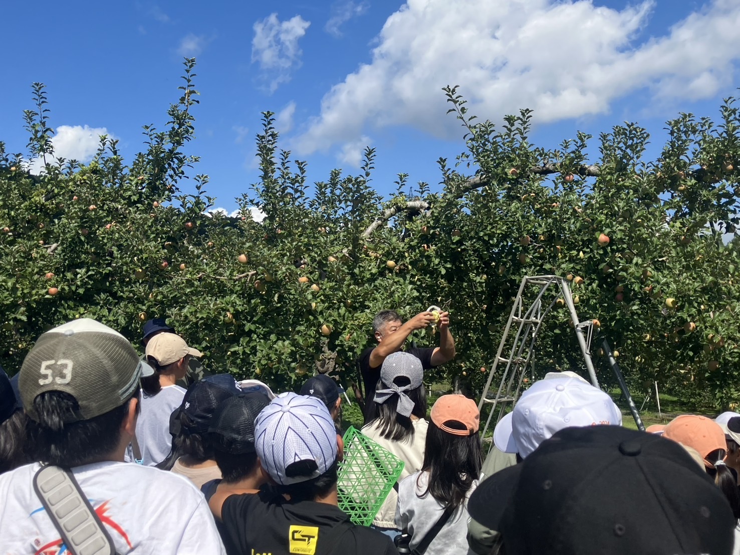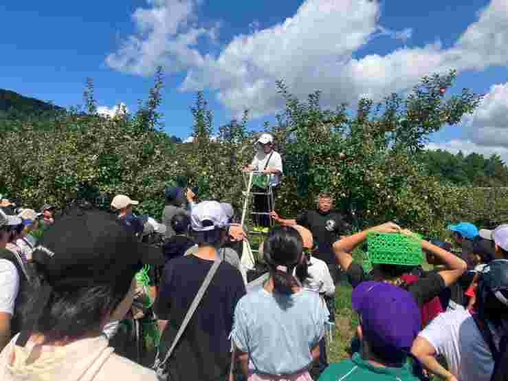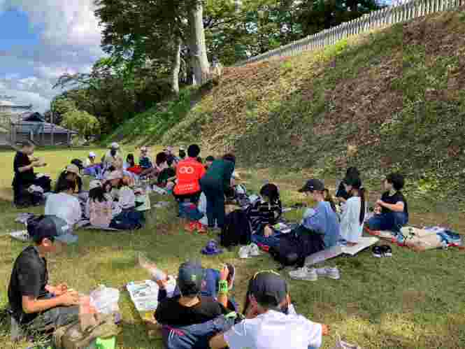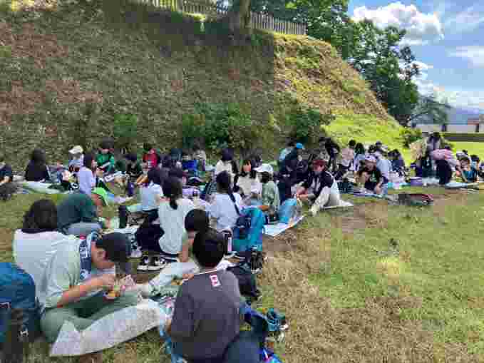 飯山城の草原で作ってきたお弁当を食べ、塩崎農園でりんごを一人4個ずつお土産に取らせていただきました。もぎたてのりんごは、とても美味しかったです。道の駅に寄って、飯山市とお別れです。