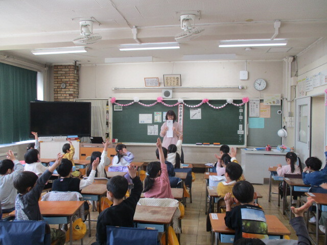 姿勢正しく、授業を受けてます。入学式の翌日とは思えないほど、落ち着いたスタートを切っている1年生。あいさつもしっかりできて立派です!