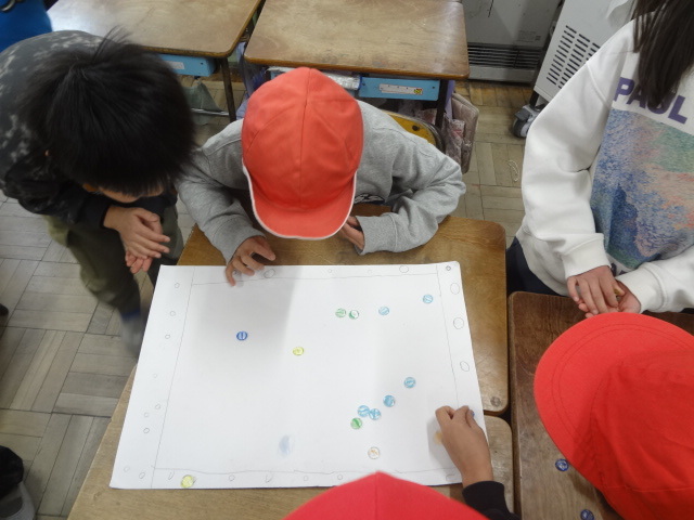 生活の時間に、こまやおはじき、わらべ歌、かるたなどの昔遊びに触れました。子供たちから「1年生にも教えてあげたい!」という声があがり、技の練習をしたり、分かりやすい伝え方を考えたりして、実際に1年生を招待する準備をしました。当日は、1学期の学校案内の時に比べて、説明の仕方も上達し、1年生への思いやりの気持ちも増していように感じました。