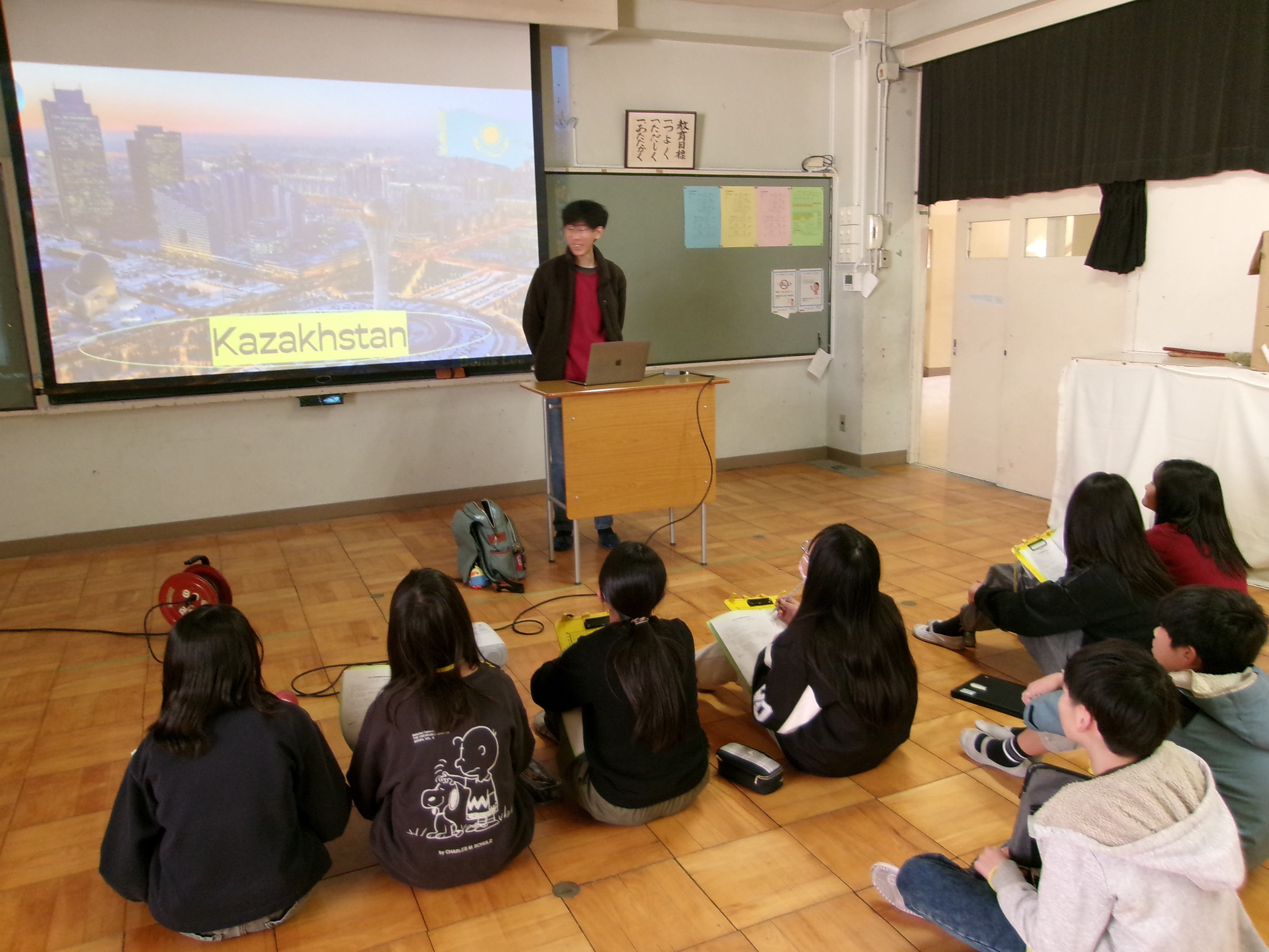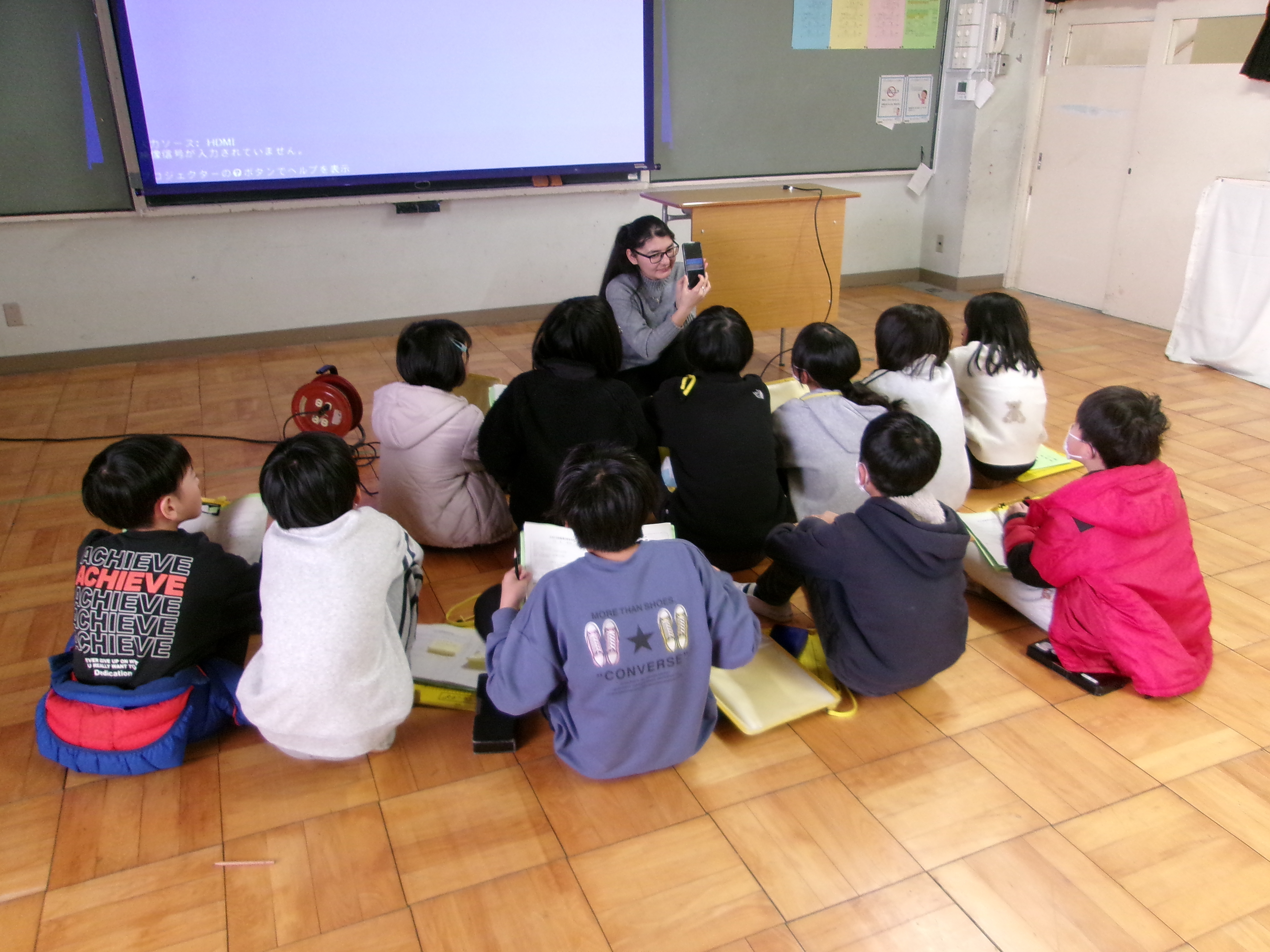 先日、総合「こんにちは、世界のみなさん」の学習で、ロシア、ウクライナ、ウズベキスタンの留学生の方3名をお招きして国際交流を行いました。子供たちは、アニメやおもてなし、環境などについて、日本の特徴やその良さをスライドでまとめて紹介し、相手に伝わるように工夫しながら発表しました。留学生の方からは、自国の文化や生活の様子などを教えていただきました。子供たちは、積極的に質問をして、互いの国の違いや共通点を知ろうとする姿が見られました。今回の国際交流を通して、自国を見つめ直すとともに、異なる文化を知り、尊重しようとする気持ちが育まれました。