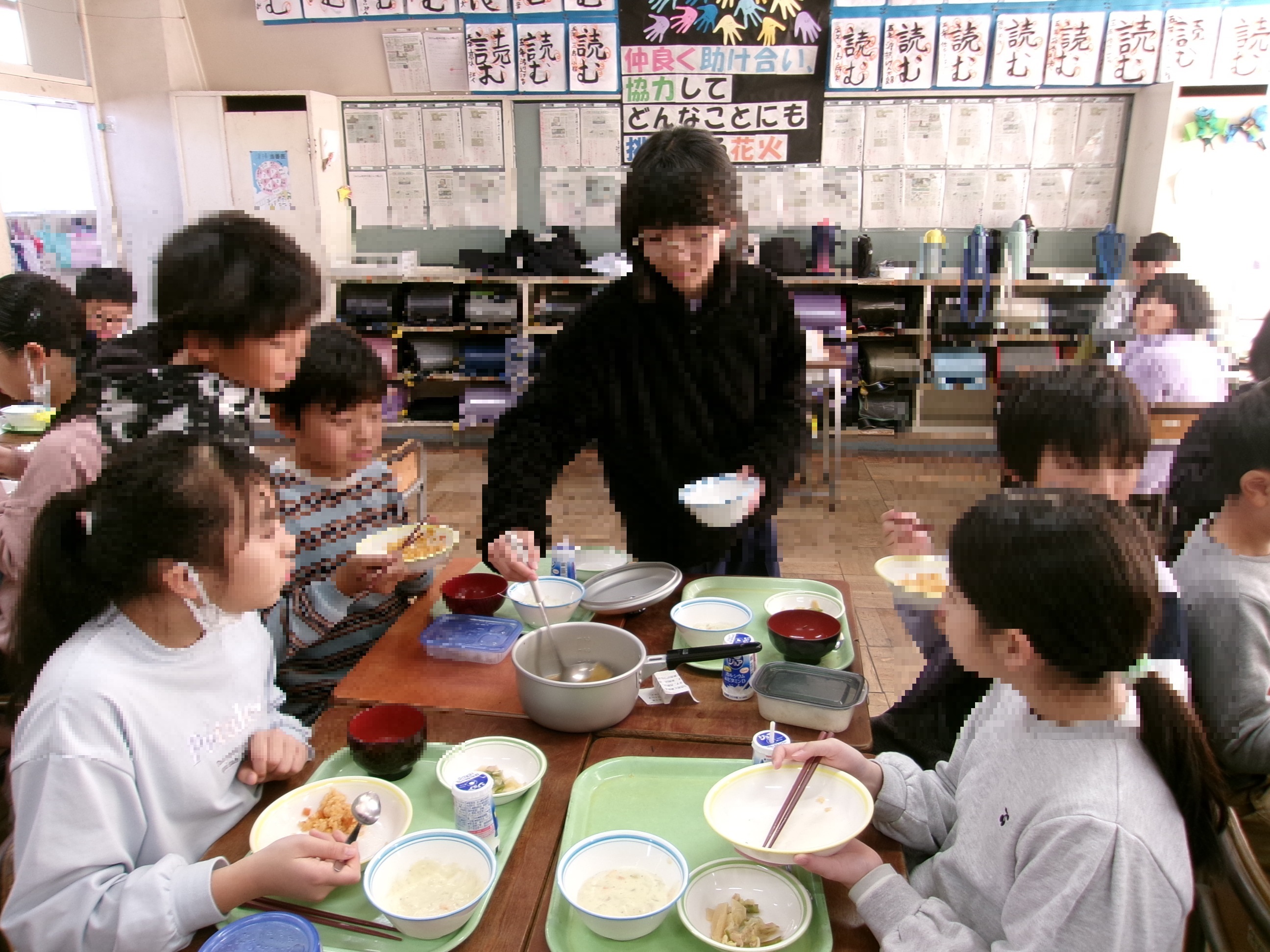 つやつやのおいしそうな米に子供たちも大喜び!みんな少しずつ家に持ち帰ることができました。自分たちで育てた米の味はどうだったでしょうか。授業の最後には、澤井さんへの感謝の気持ちを伝えました。米を作る大変さやできた時の喜びを実感できた良い学習になりました。