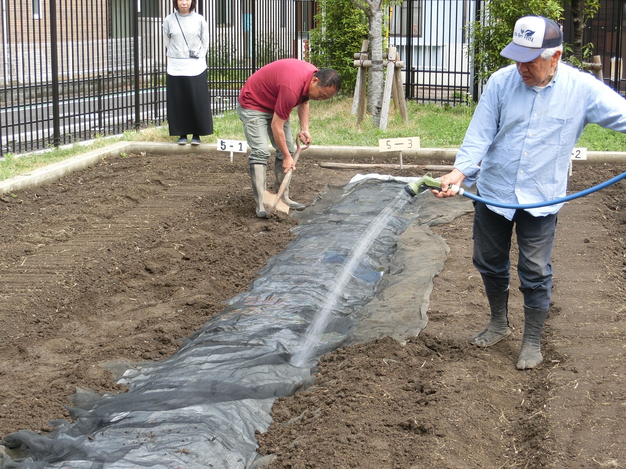 小さな種もみを丁寧に土の中に埋め、種まきを行いました。