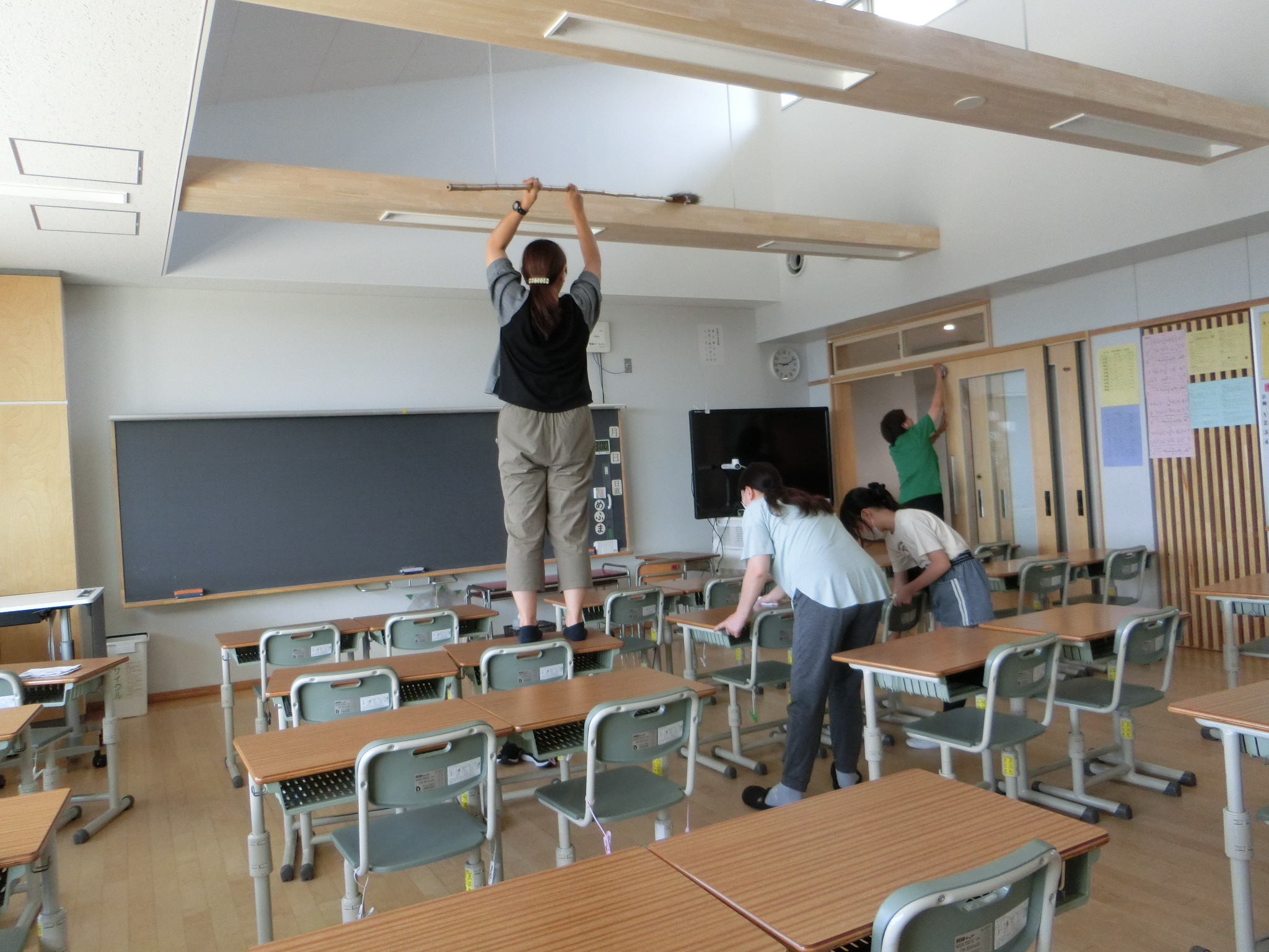 夏休み、最終日、子供たち、保護者の方、教員で校内清掃を行いました。すっきりして2学期を迎えられそうです。