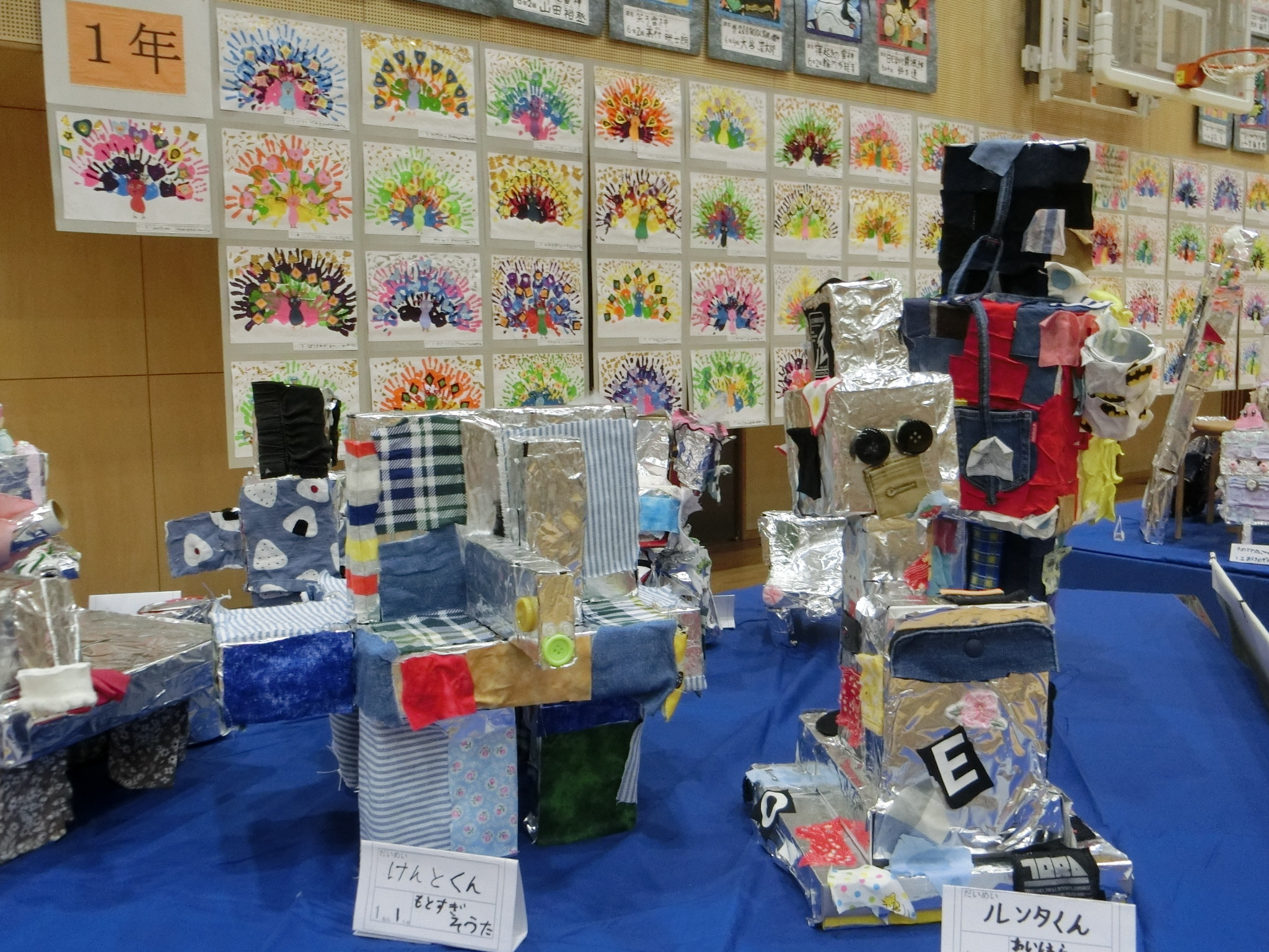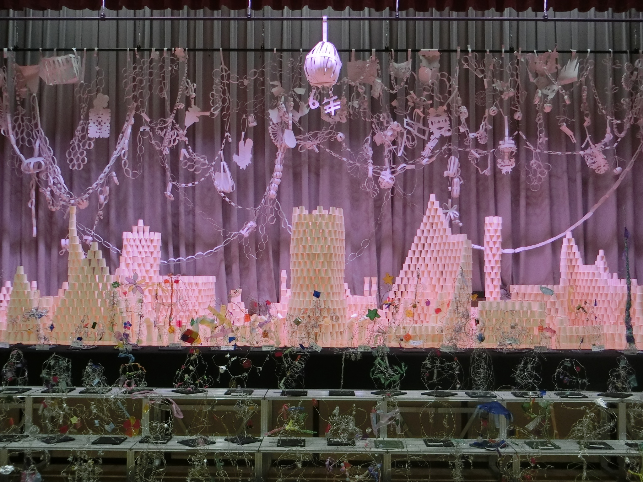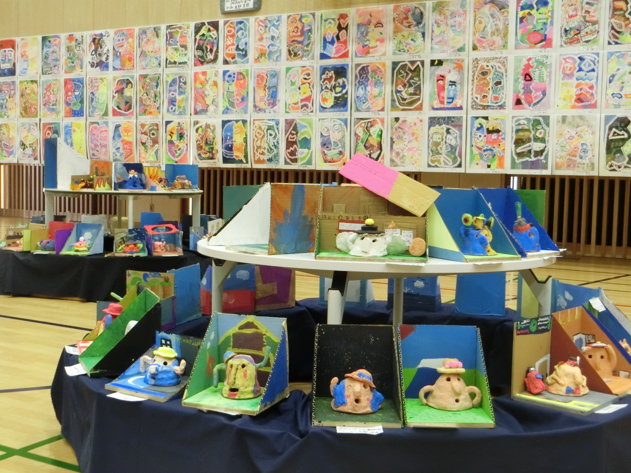 展覧会がありました。ステージ上は6年生の共同作品です。どの作品もとても素敵です。