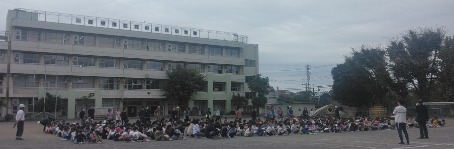 今日もとっても静かに全校児童が避難をし、校庭も静まり返っています。