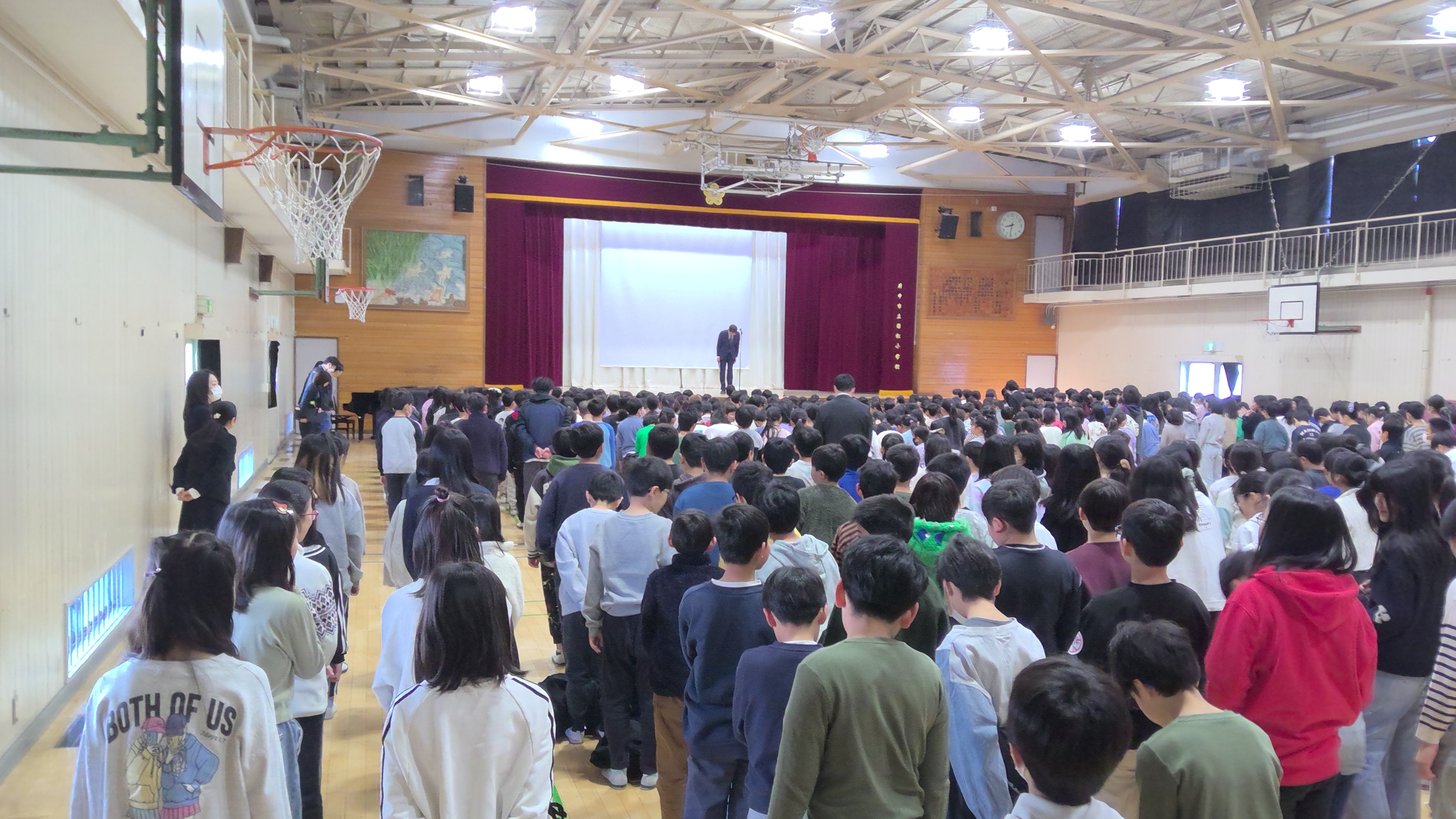 修了式と離任式がありました。しっかりとした態度で式に参加する児童たちの姿から成長を感じました。