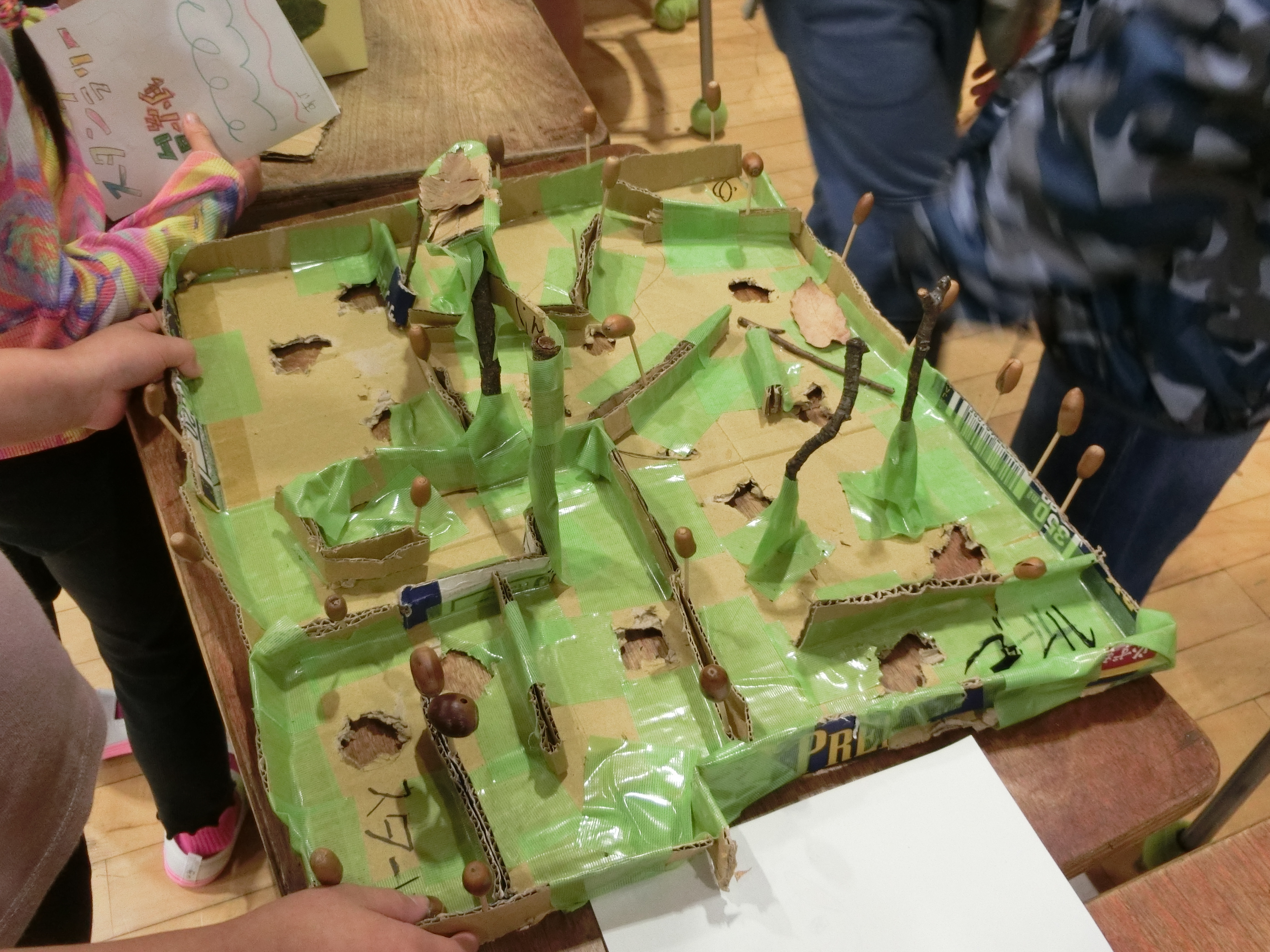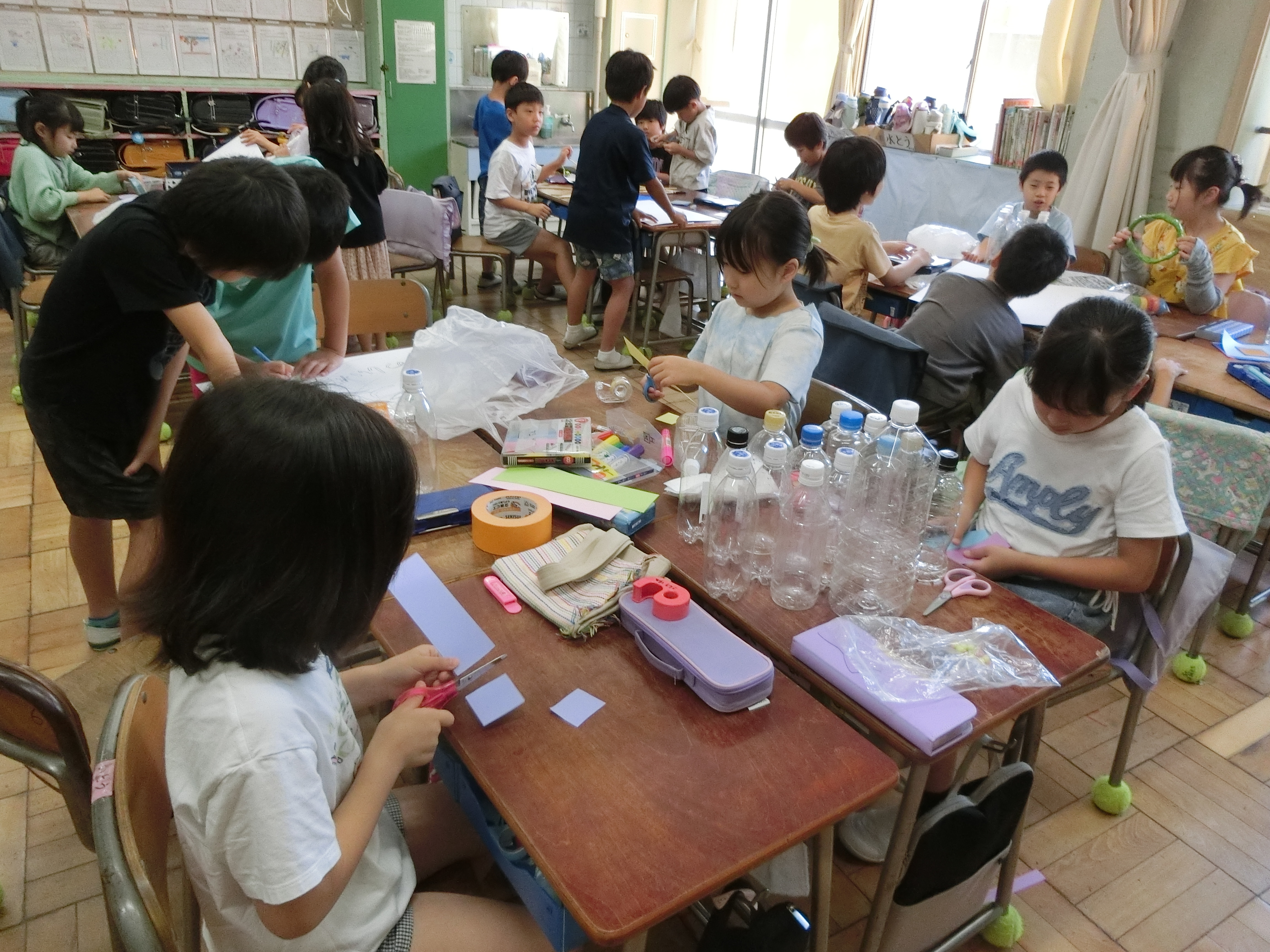 9月末の様子です。10月6日に行われる若松ランドに向けて準備をしています。まず、作りたい動くおもちゃを選び、グループを作りました。グループ内で材料や遊び方などを話し合い、おもちゃや看板を作り、お店の準備を続けてきました。そして、本番に向けてリハーサルも行いました。リハーサルを通して、「もっとこうしよう!」と新たに話し合っている姿も見られました。一年生に分かりやすい説明をしたり、楽しんでもらえるようなルールを考えたり、いろいろな工夫をしています。上級生のとしての意識も高まっている二年生。本番がとても楽しみです。