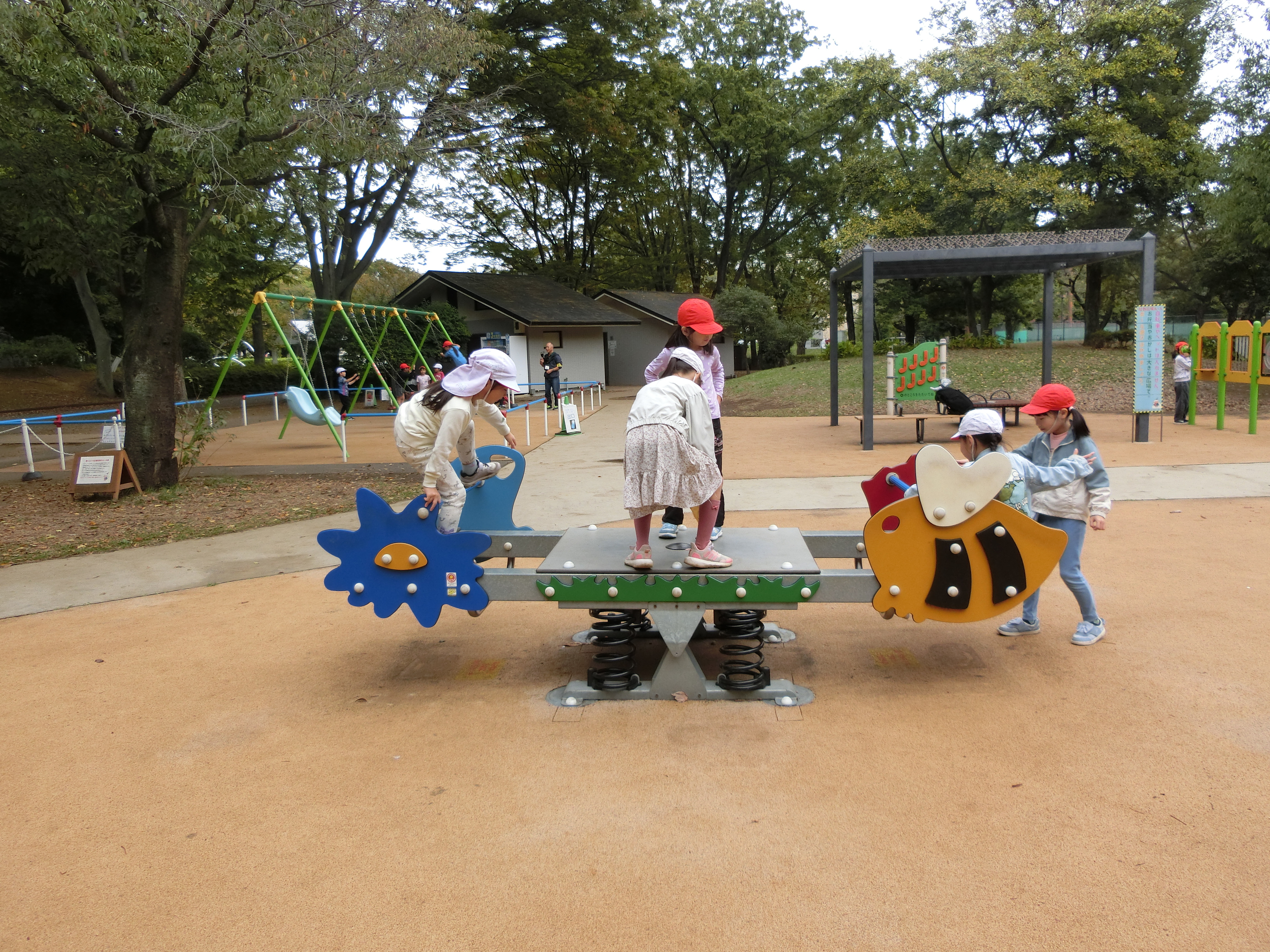 10月21日に府中の森公園へ遠足に行ってきました。子どもたちは何度も行ったことのある身近な公園ですが、遠足で行くのは特別ですね。遊具や広場で友達といっぱい遊びました。むさしのの森では秋探しとして、どんぐりや落ち葉、コオロギなどを見つけ、秋を見つけることができました。敷物を敷いてみんなでお弁当を食べるのも小学校に入ってから初めてでした。お弁当を見せ合いながら、嬉しそうにしている子供たちの姿が印象的でした。お弁当のあとも、大きな広場で自由に遊びました。この日は気温も低かったのですが、寒さを忘れるくらいたくさん体を動かしました。学校から近いですが、たくさん走り回った子供たちは学校に帰ってきた頃には疲れ切っていました。お弁当や荷物の準備ありがとうございました。
