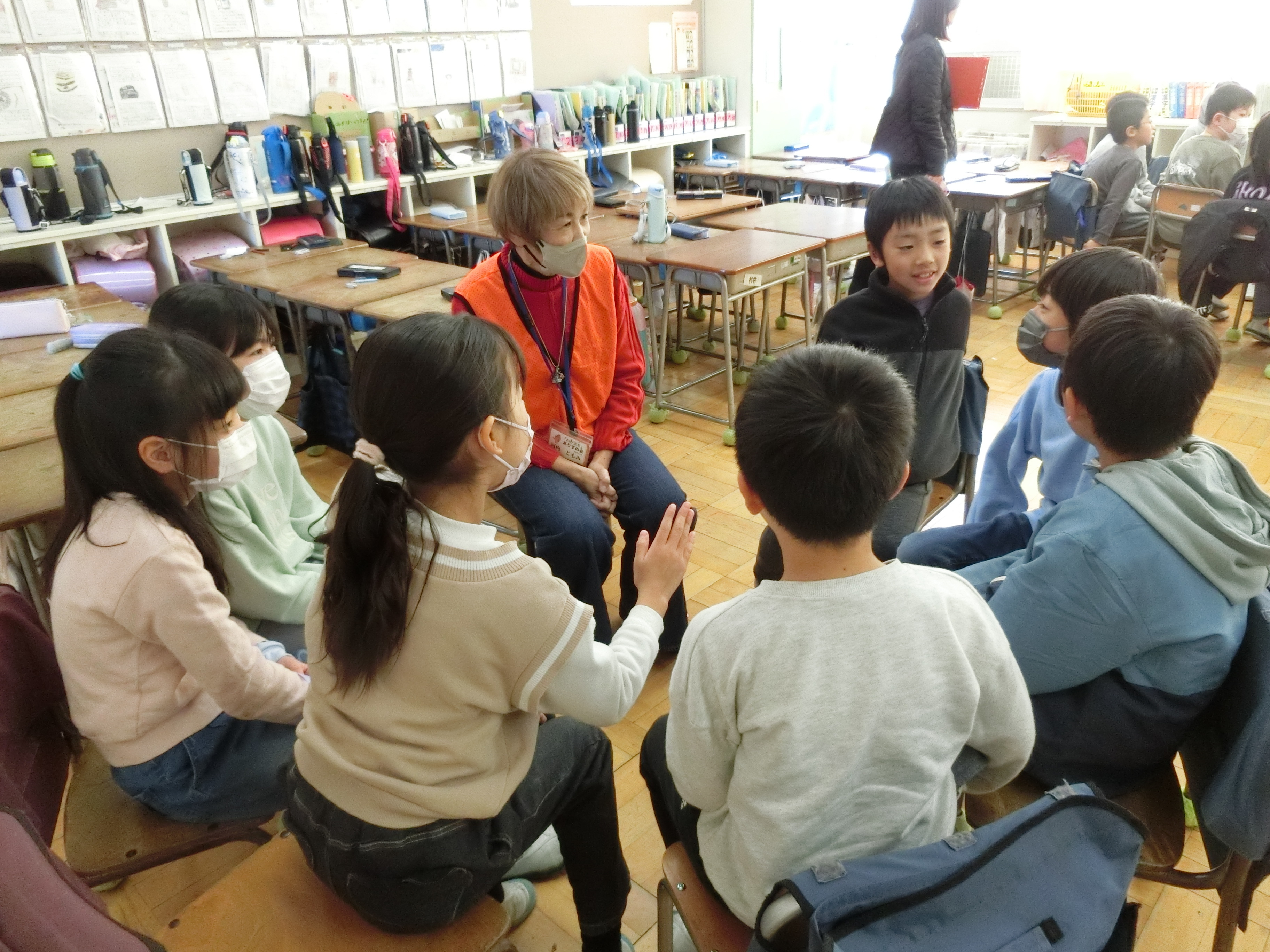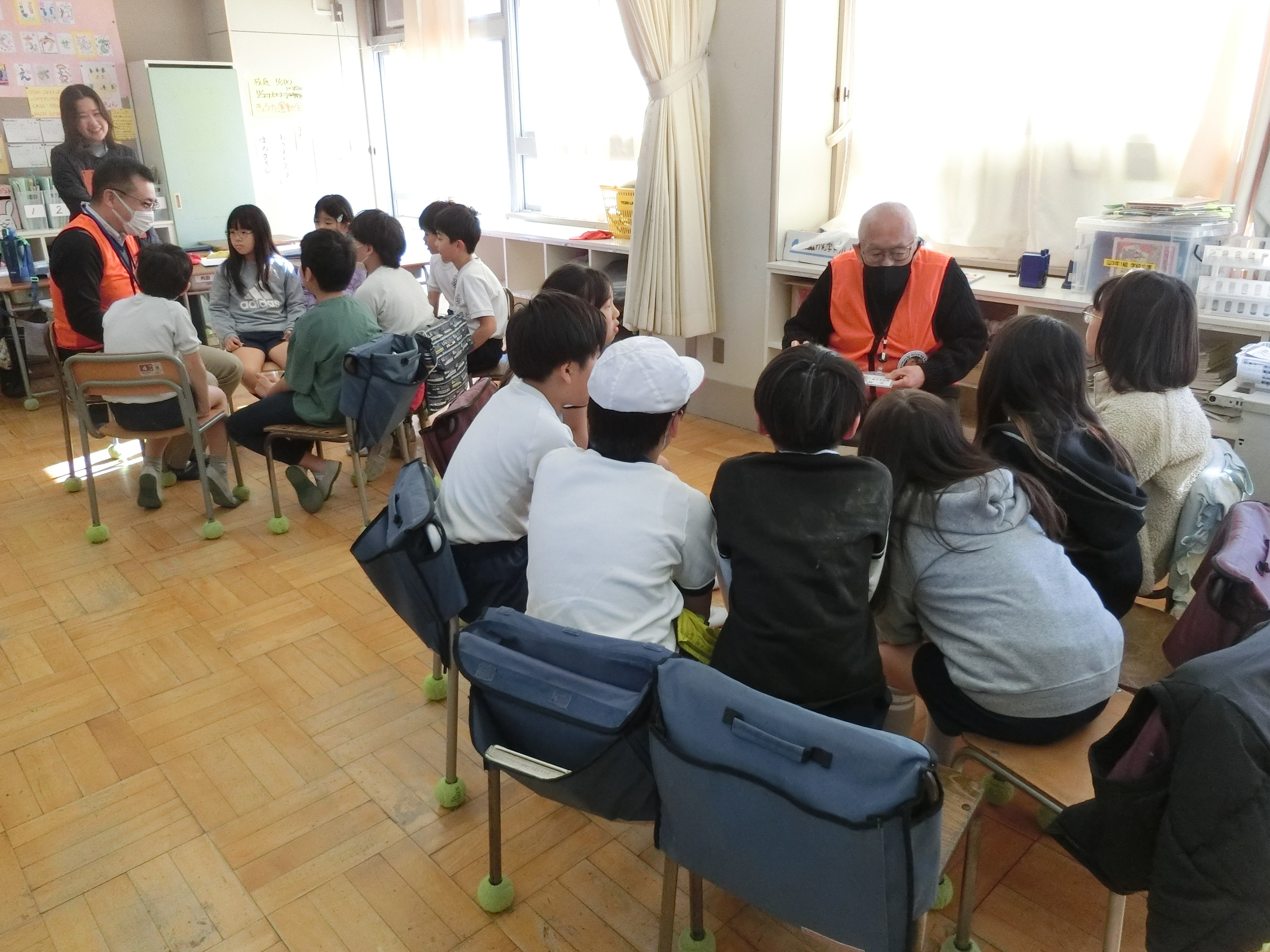 12月10日(水)には、地域で子どもたちを見守ってくださっている見守り隊の方4名をお招きし、お話をうかがいました。