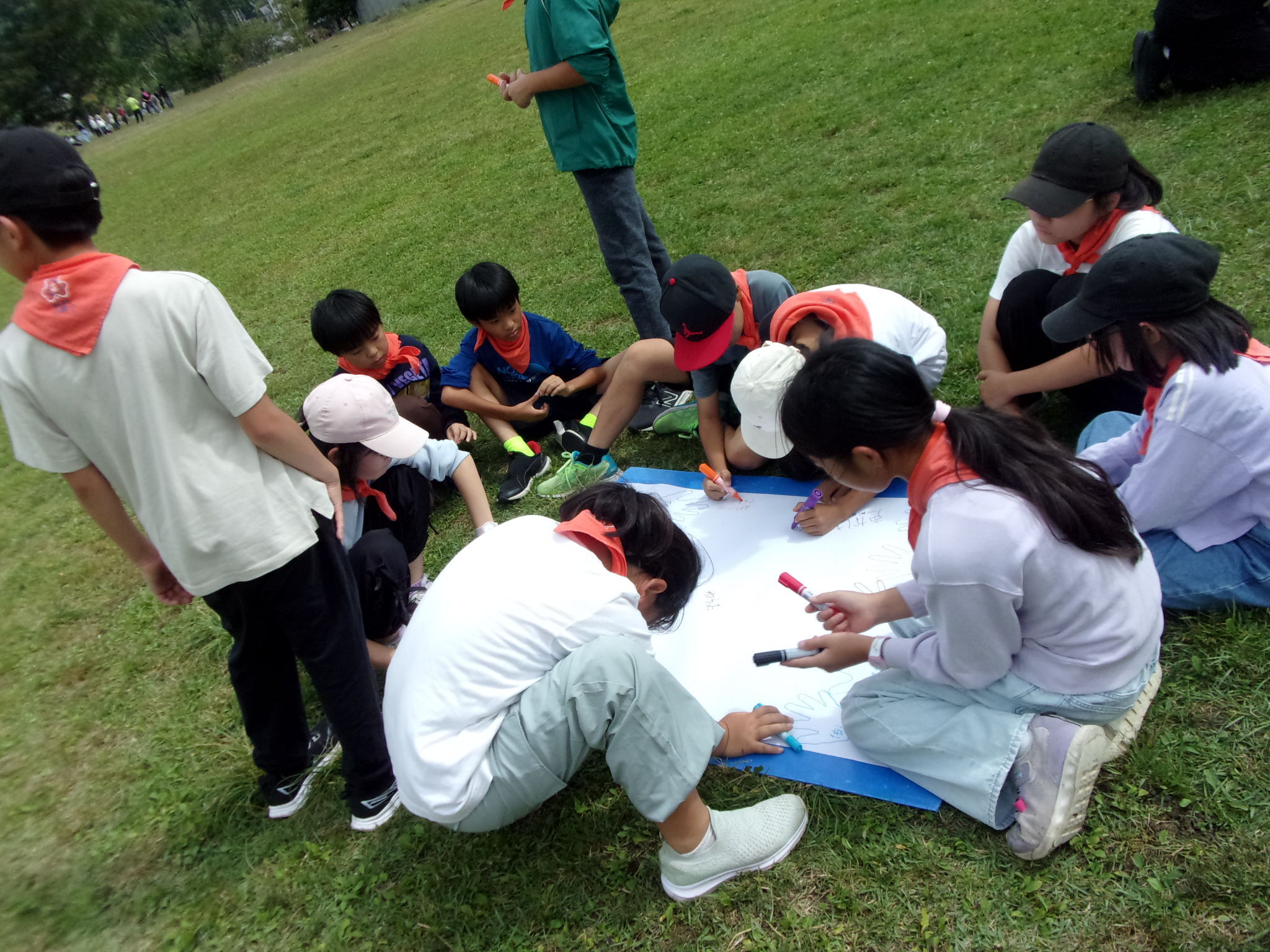 ソフトボール投げの後、子供たちが幸せそうに涼む姿が見られました。