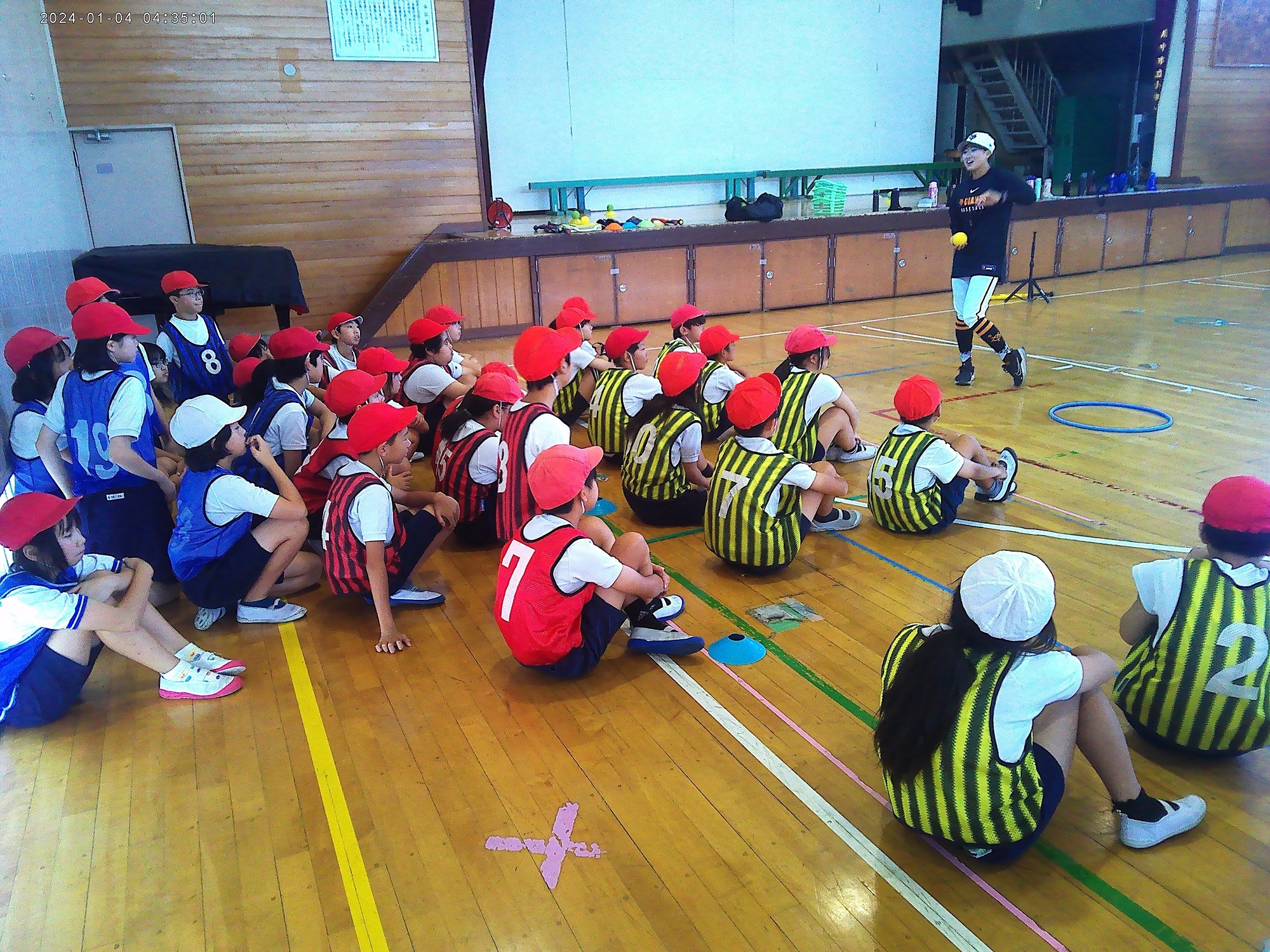 野球チームジャイアンツのコーチにお越しいただき、上手に打つコツを教わりました。打てるようになる魔法の言葉を教わり、最後はミニゲームにも取り組みました。