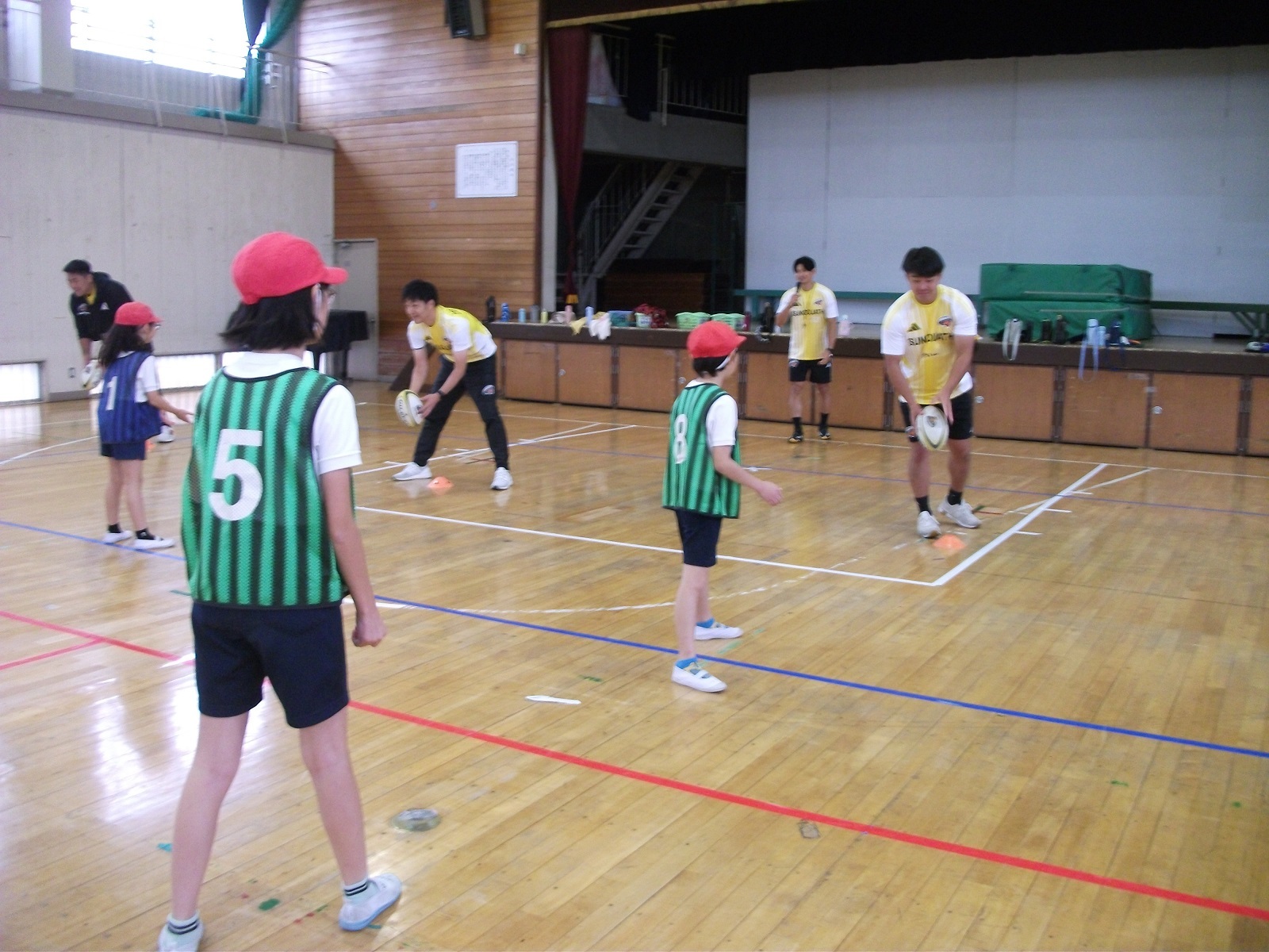 サントリーサンゴリアスの選手が小柳小にやってきてくれました。
