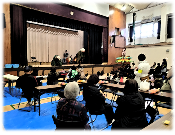 2年生と5年生が「うりこひめ」の昔話を聞いたり、手遊びを教わったりしました。みんなで歌ったり、体を動かしたり楽しい時間になりました。