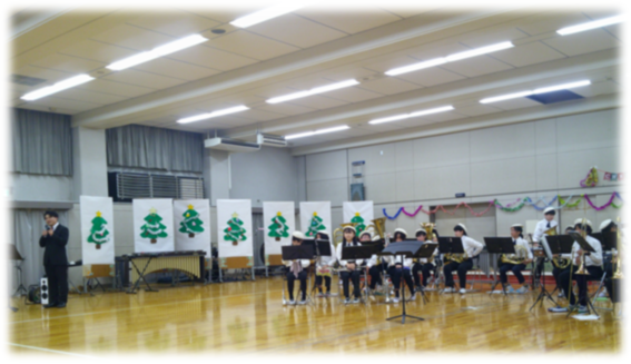 午後から、府中第六中学校で行われたクリスマスコンサートにウインドブラスが出演しました。本番では、これまでの練習の成果を存分に発揮し、満足のいく演奏となりました。