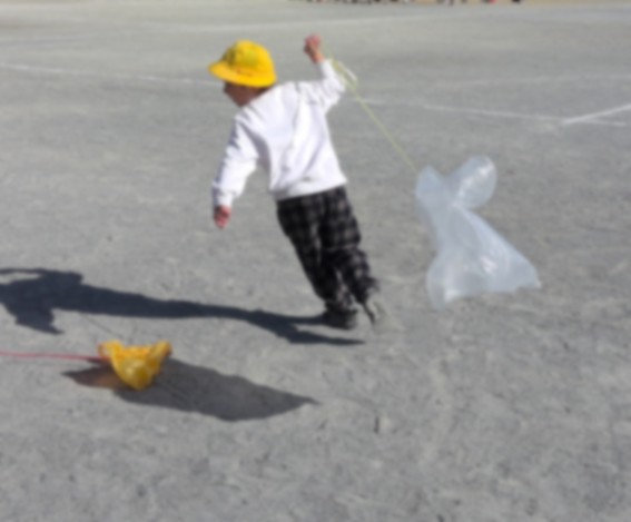生活科の学習「ふゆをたのしもう」では、寒い北風と仲良くなるために、たこあげや風車、紙飛行機など様々なおもちゃを作って楽しんでいます。
