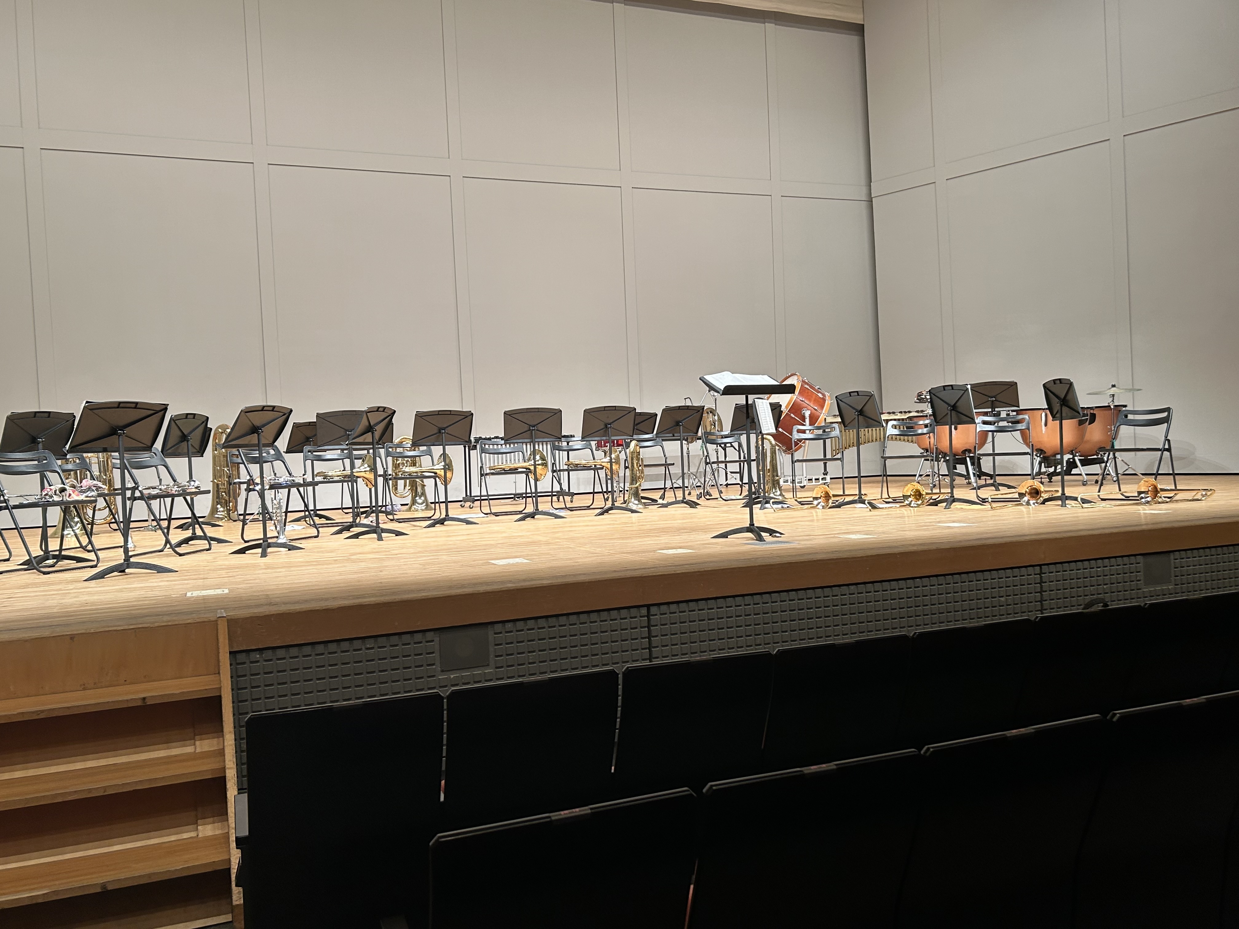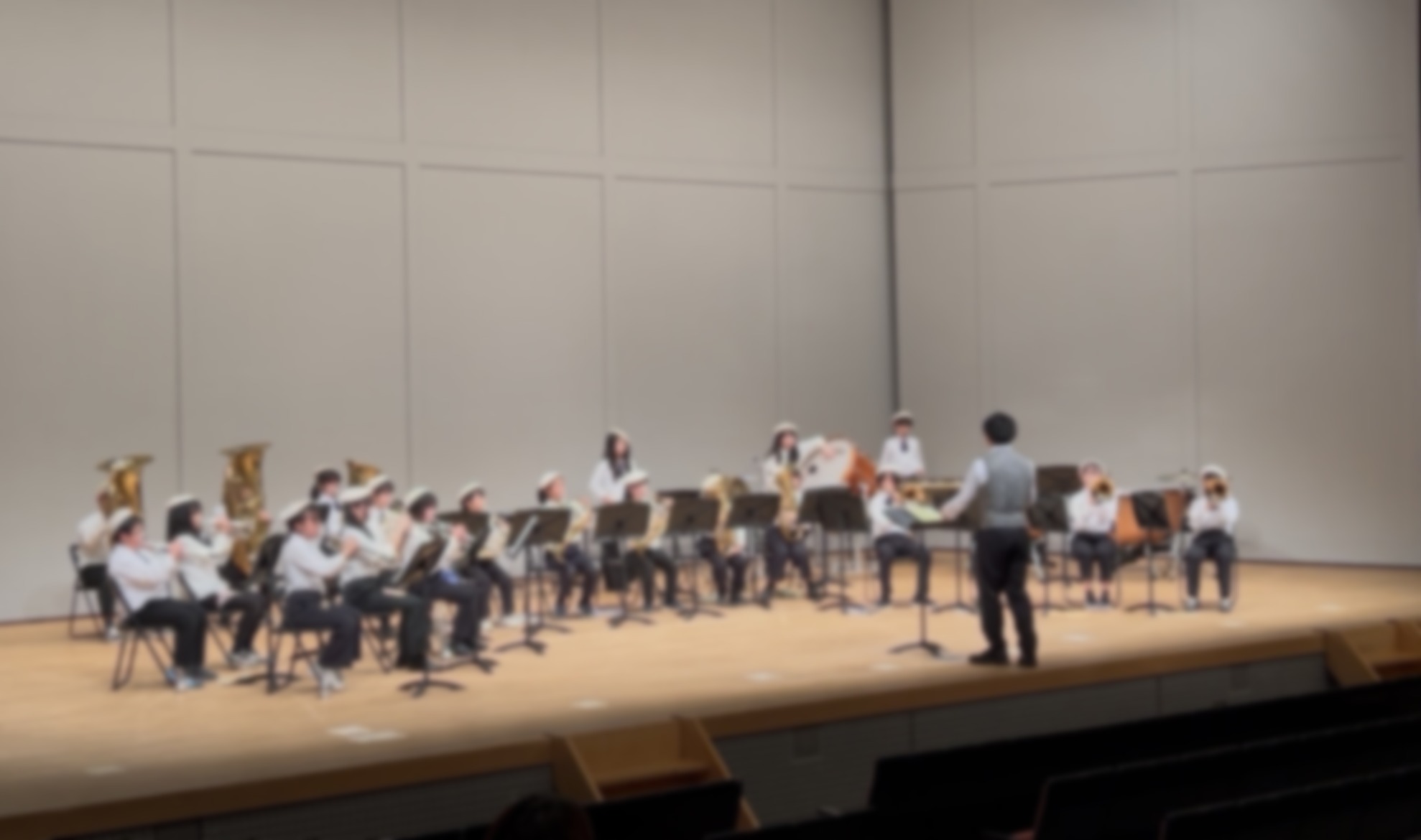 府中の森芸術劇場で「センチュリア」と「ディズニーメドレー」を演奏しました。慣れない場所での演奏でしたが、集中して取り組み、この1年間の成果を記録しました。楽器運搬や舞台設営などにご協力いただいた保護者の皆様、ありがとうございました。