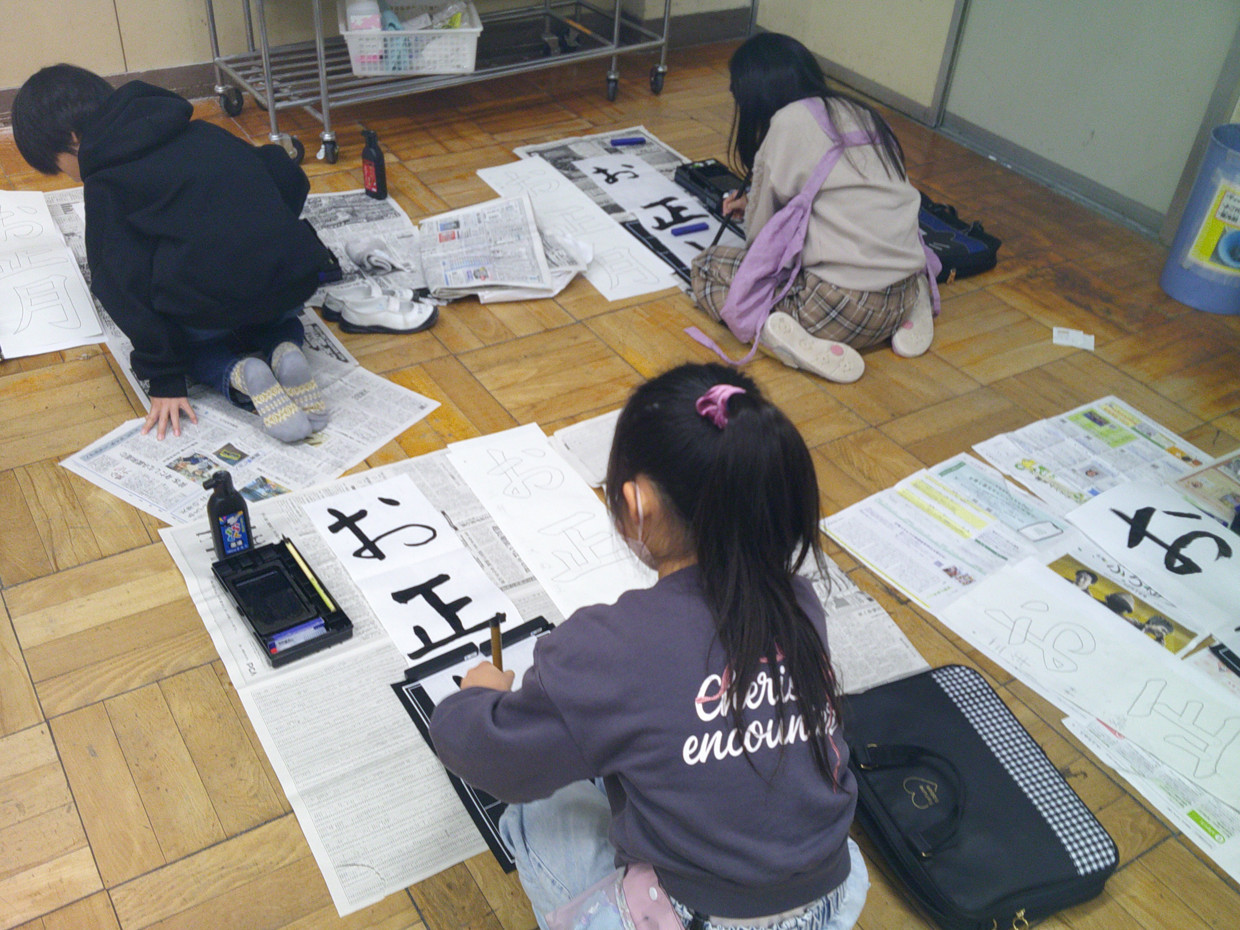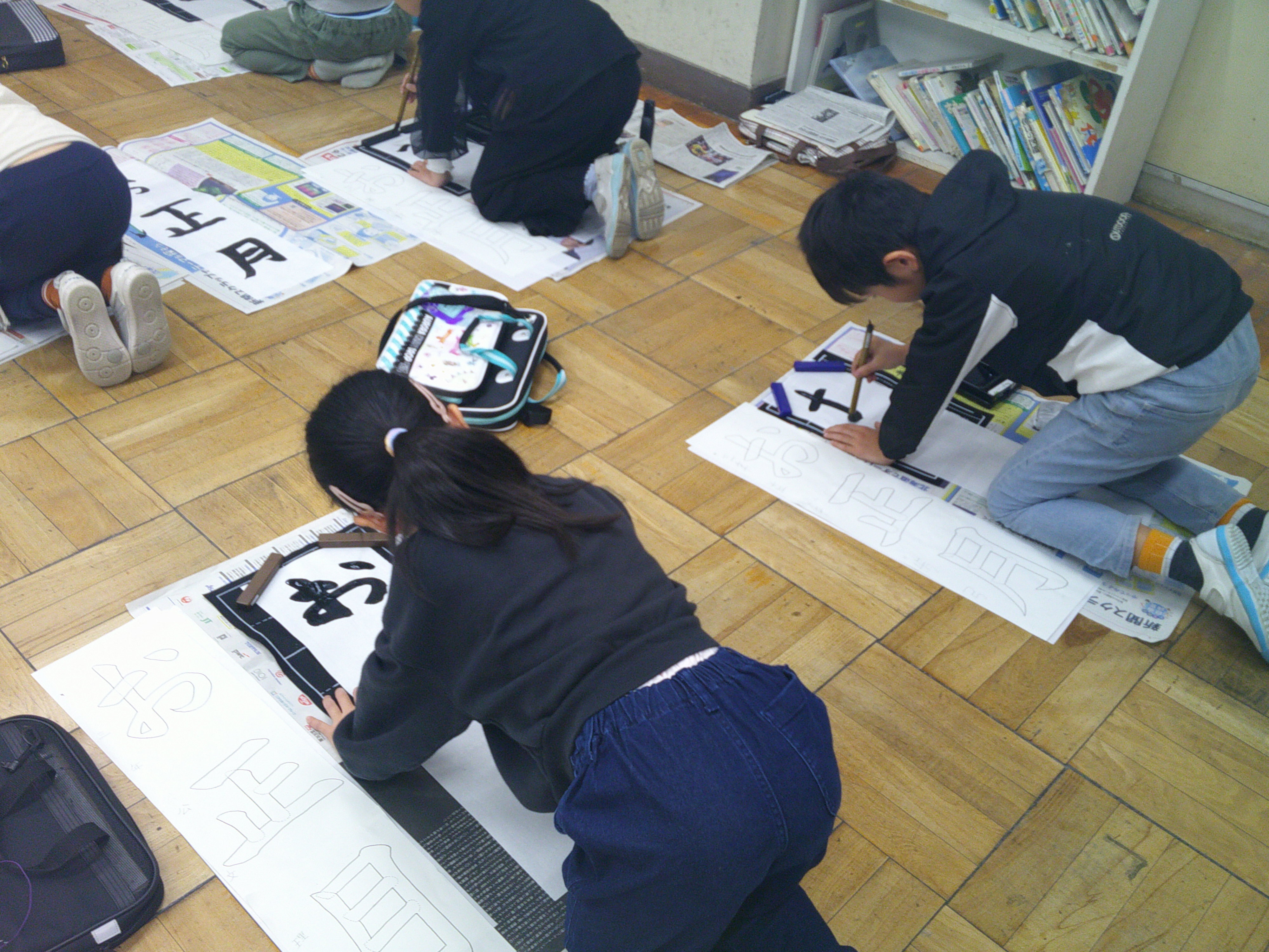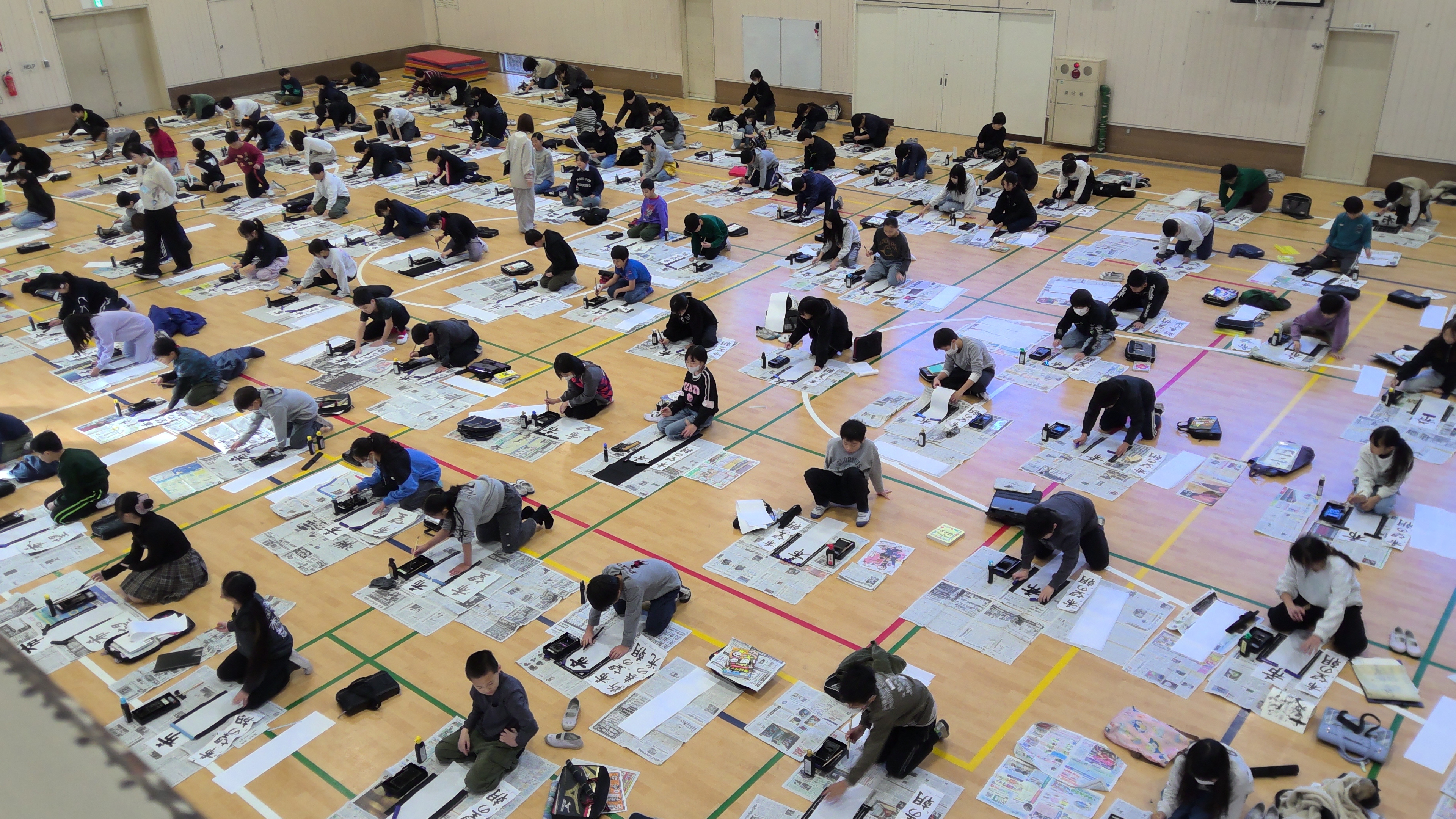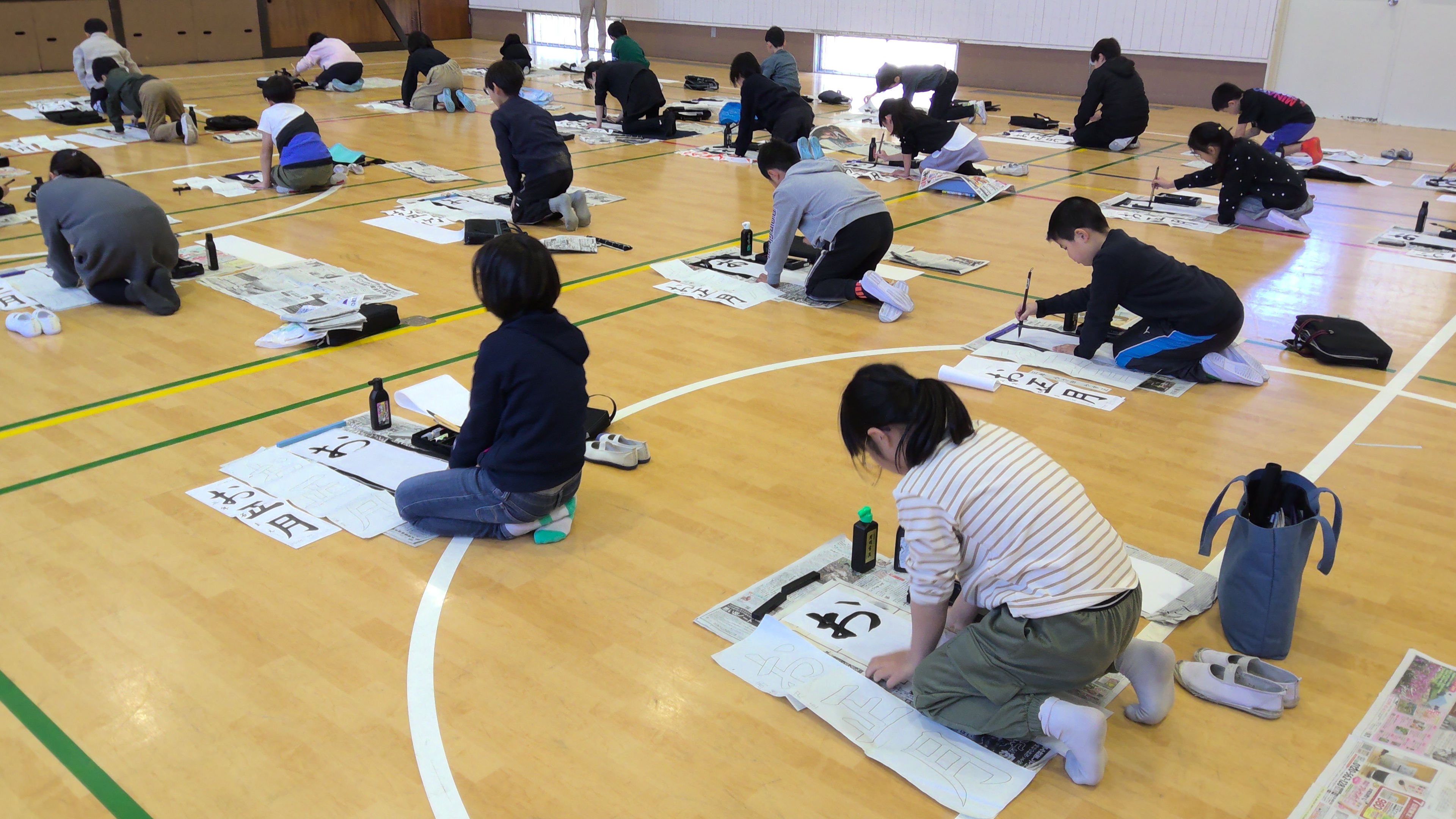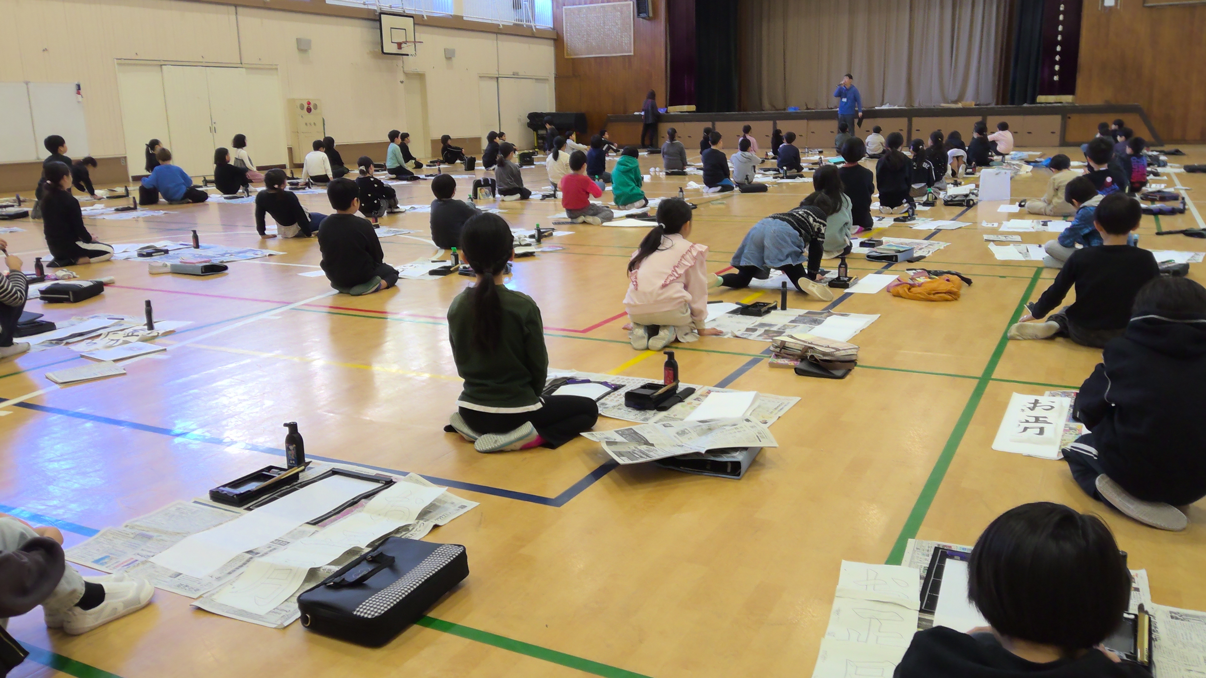 3年生は3・4時間目に席書会を行いました。手本をよく見て、長半紙にバランスよく「お正月」の文字を書きました。2学期に学習したことや冬休みに練習してきたことを思い出し、集中して取り組みました。校内書写展で掲示されますので、ぜひご覧ください。