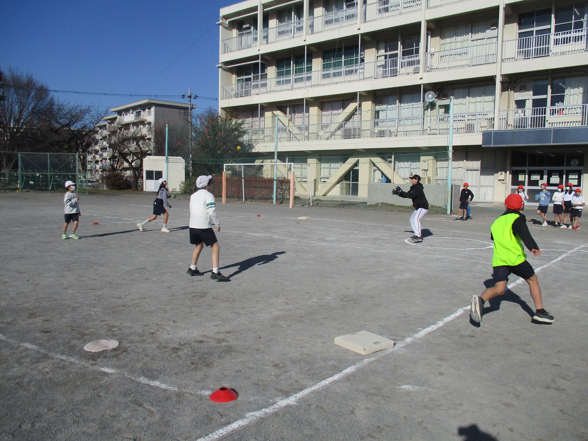 体育「ベースボール型ゲーム(Tボール)」からのつながりで、読売ジャイアンツの方をお迎えして、出前授業を行いました。今回の授業では、野球の基本動作の中から「投げる」を中心に指導をしていただきました。また、「思いやり」をテーマに、徐々に距離を延ばしたパスキャッチや打たないゲームを通して、野球の楽しさを再確認しながら主体的に参加することができました。