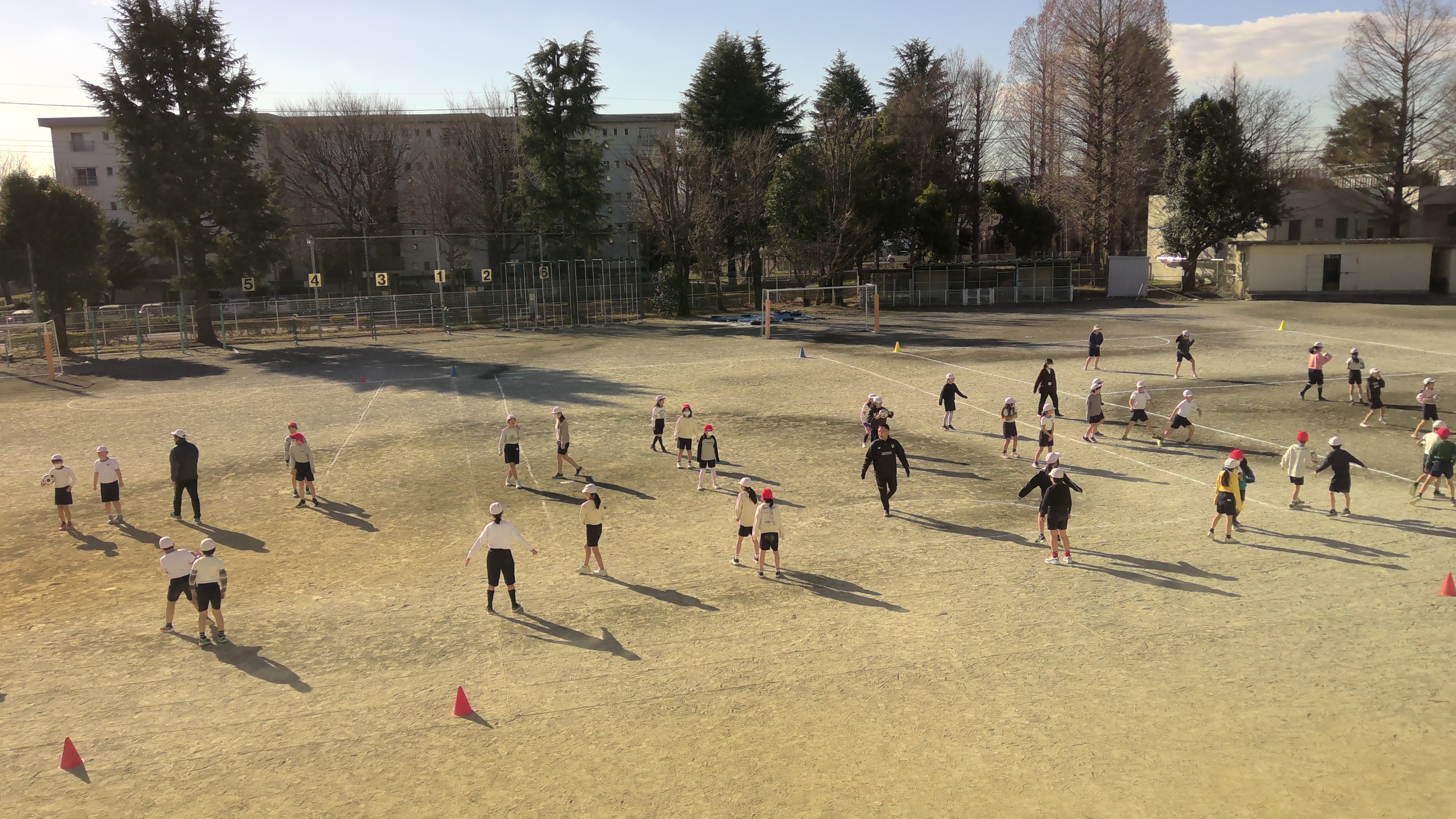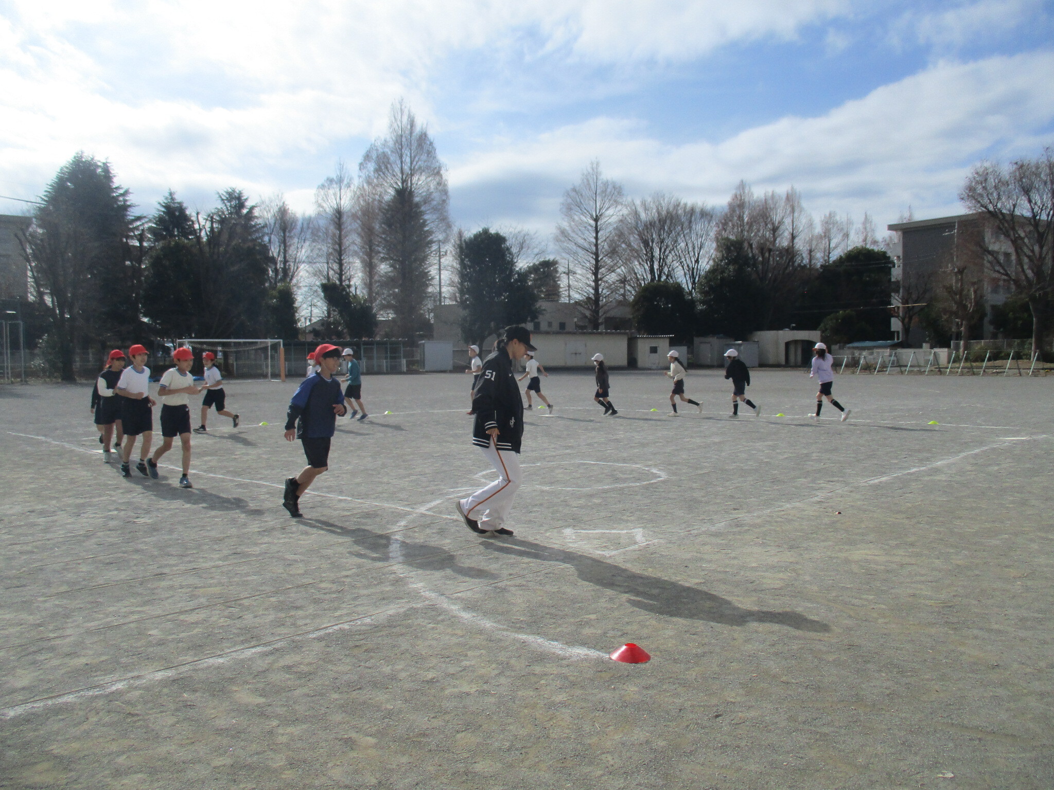 FC東京のスクールから2名のコーチをお招きし、6年生全員を対象にサッカー教室を行いました。初めは二人一組で「ドリブル・パス・止める」の基礎練習に取り組み、慣れてきたころには、動きながら声を掛け合い、スムーズにパスを交換できるようになりました。