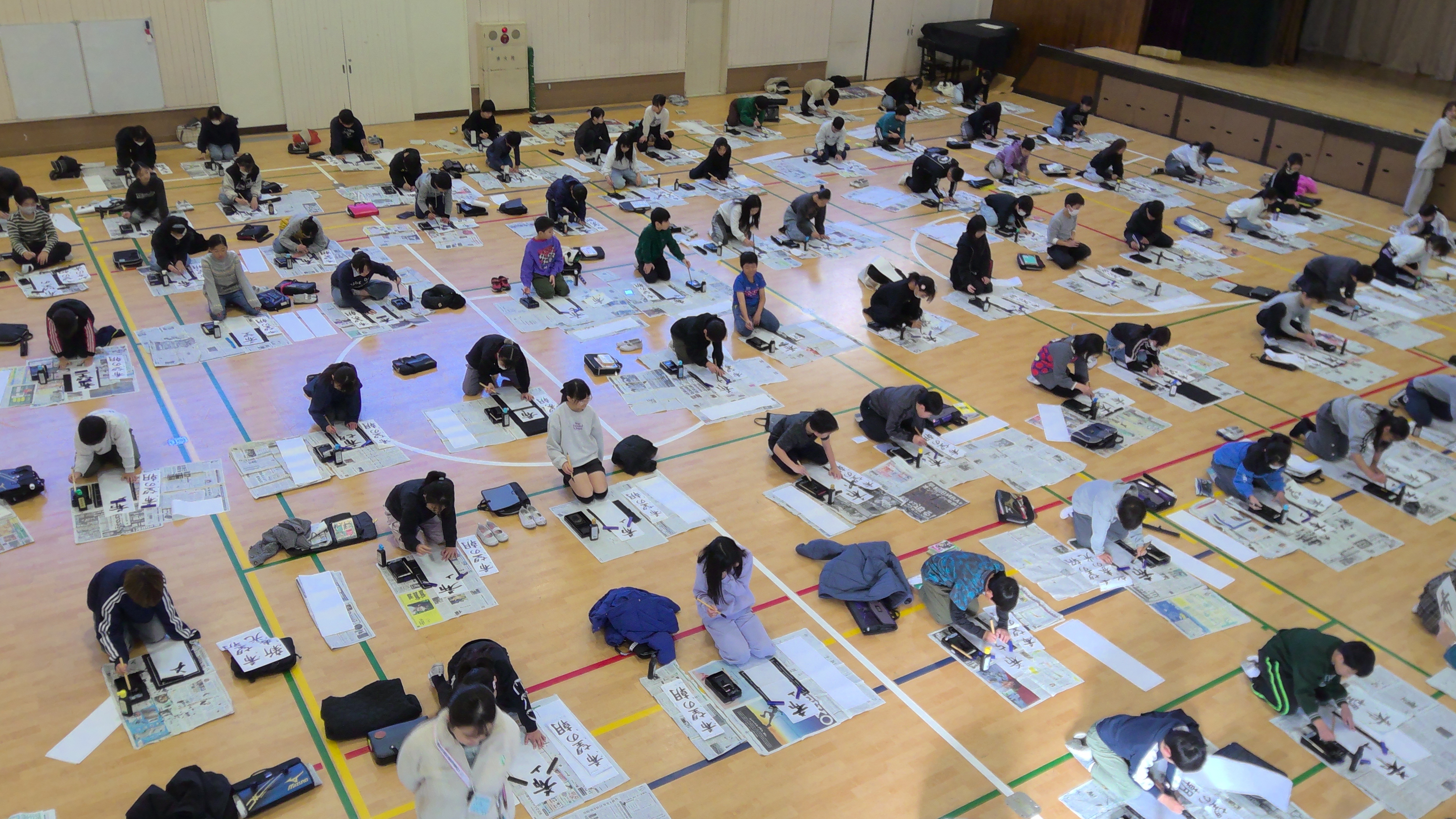 5年生は1・2時間目に席書会を行いました。今年は「希望の朝」という字を書きました。2学期や冬休みに練習したことを生かし頑張りました。